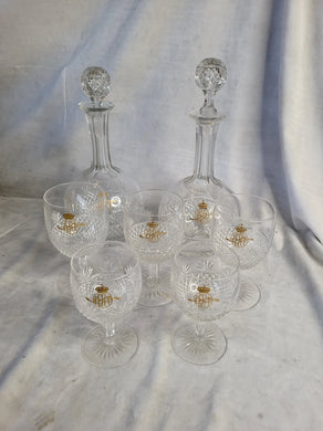 Antique early 19th century English Sherry, Decanters, And Glasses Set 7pc