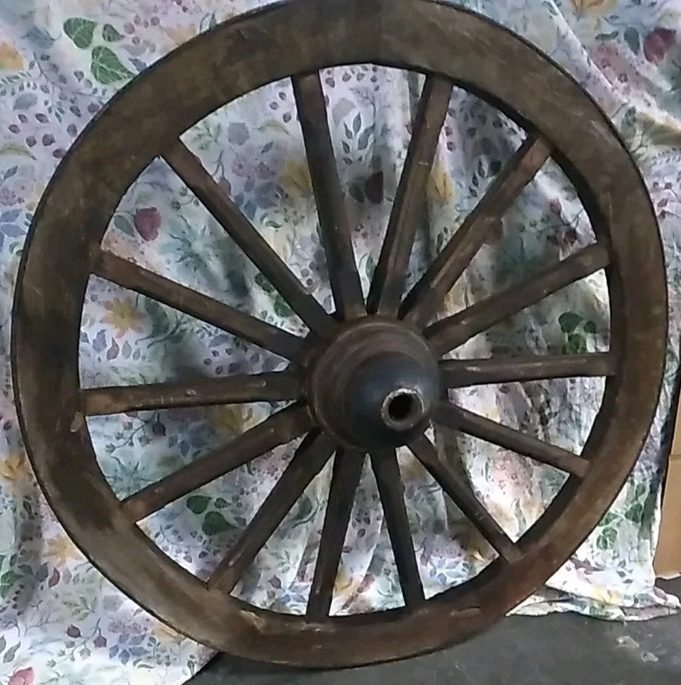 This product is a rustic wagon wheel dating back to the mid to late 1800s, with a diameter of 47 inches.