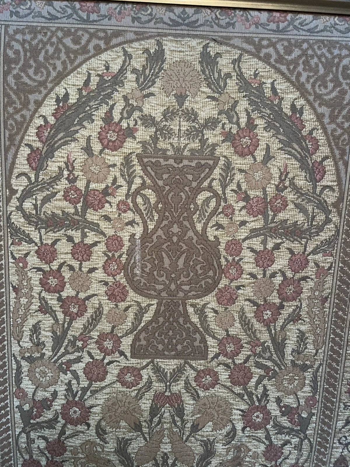 The entire frame measures approximately 59” x 42” and the tapestry measures approximately 50” x 33”