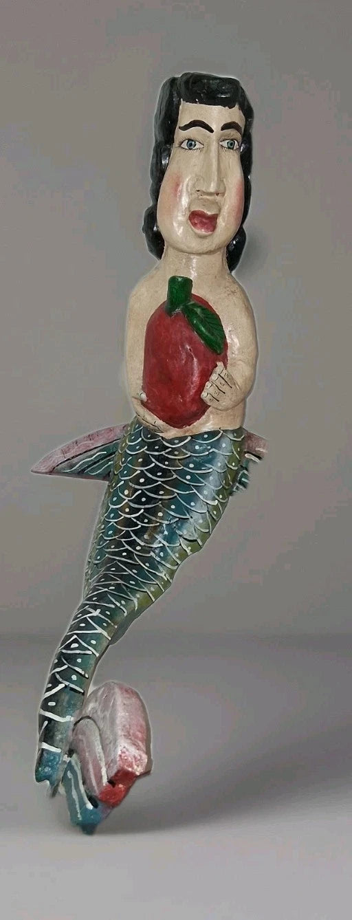 This vintage Mexican folk art mermaid wall art is a unique and handmade piece that showcases the rich cultural heritage of Mexico.