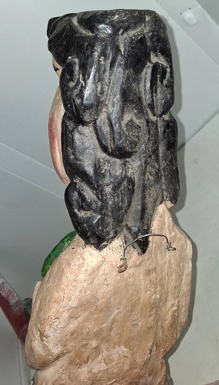 Hand-carved from wood and intricately painted, this 38-inch artwork beautifully captures the essence of Mexican culture and folklore.