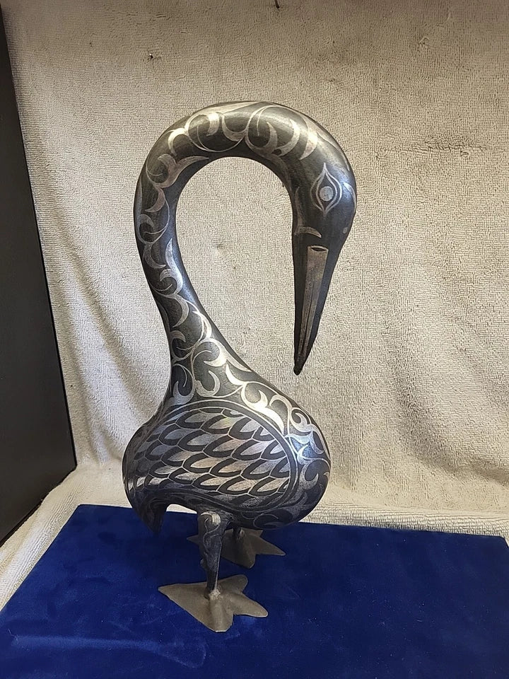 Antique Islamic Persian Qajar Period Patinated Steel Bird Figurine.