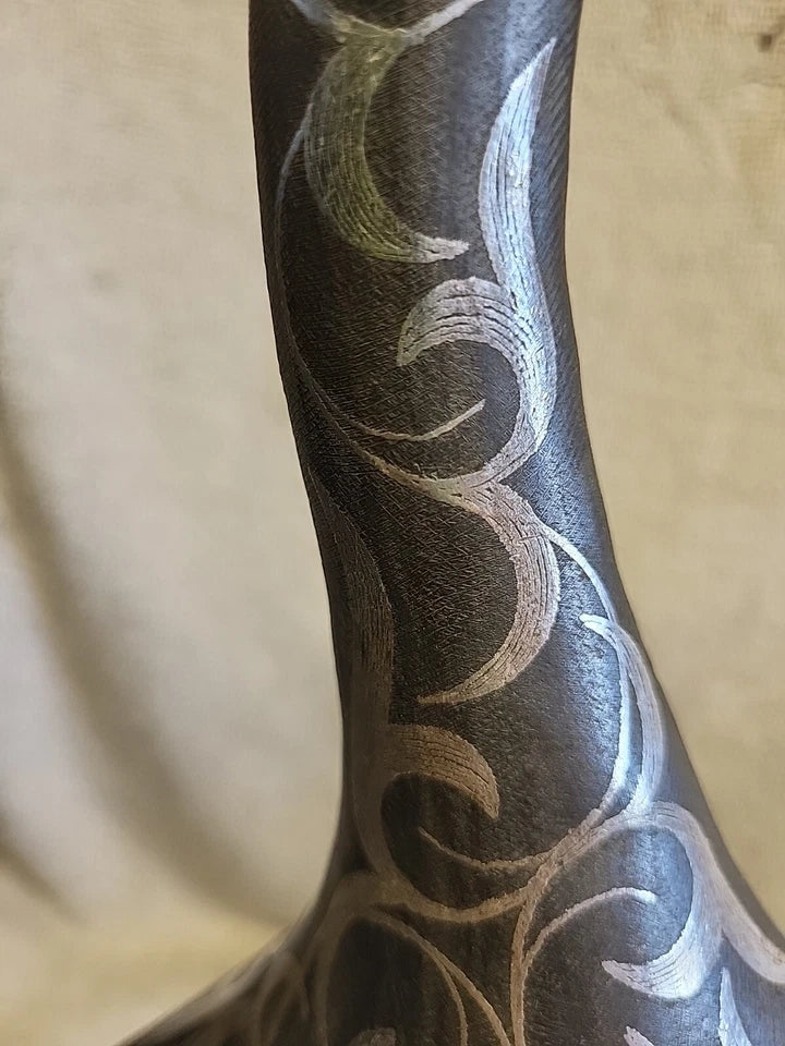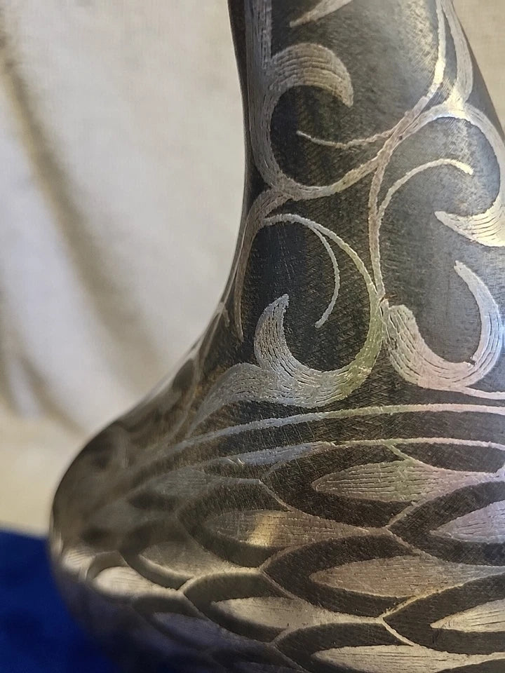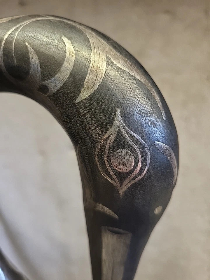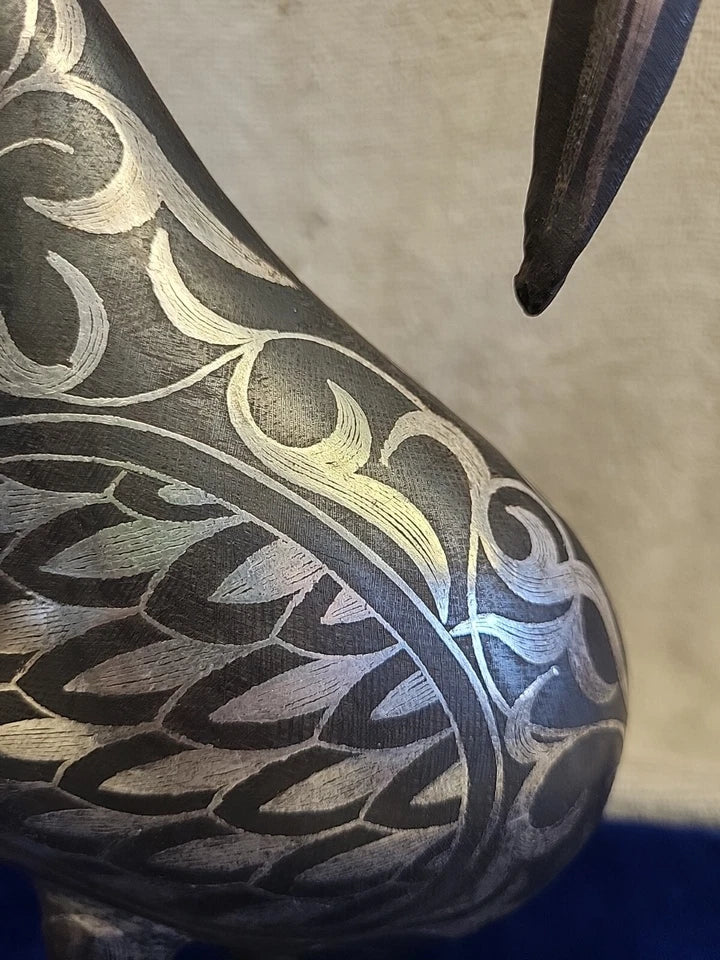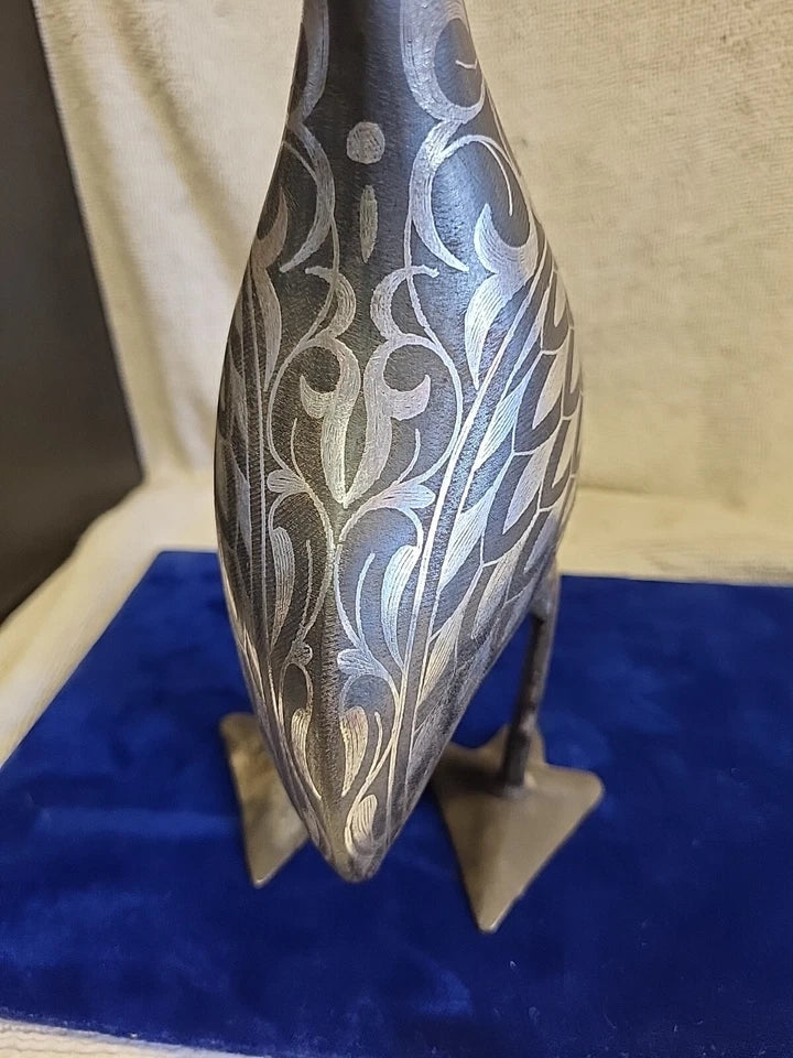 Delightful Persian metal bird with patinated decoration dating from the nineteenth Century, each measures 12 1/2" tall and 6" w.