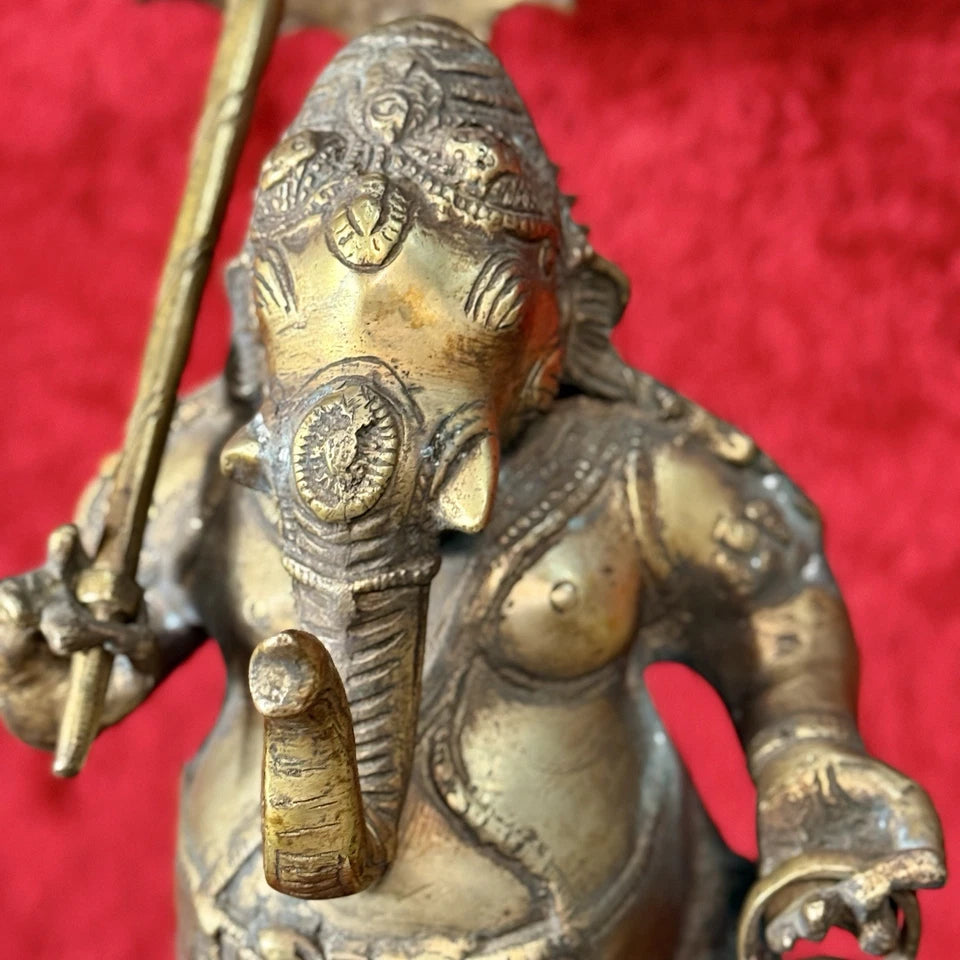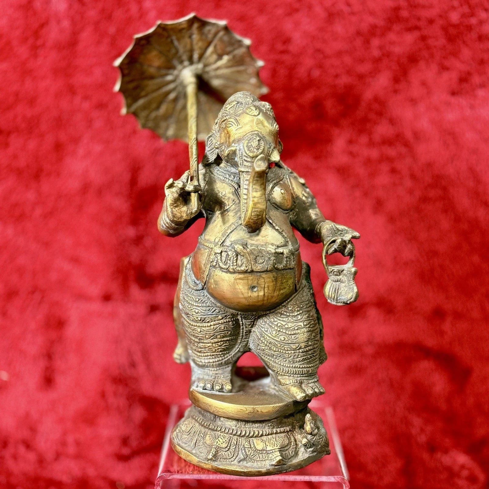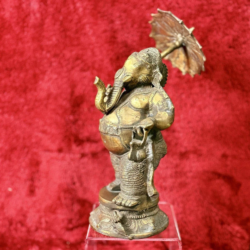 Bronze Ganesh statue, umbrella detaches for easy shipping.