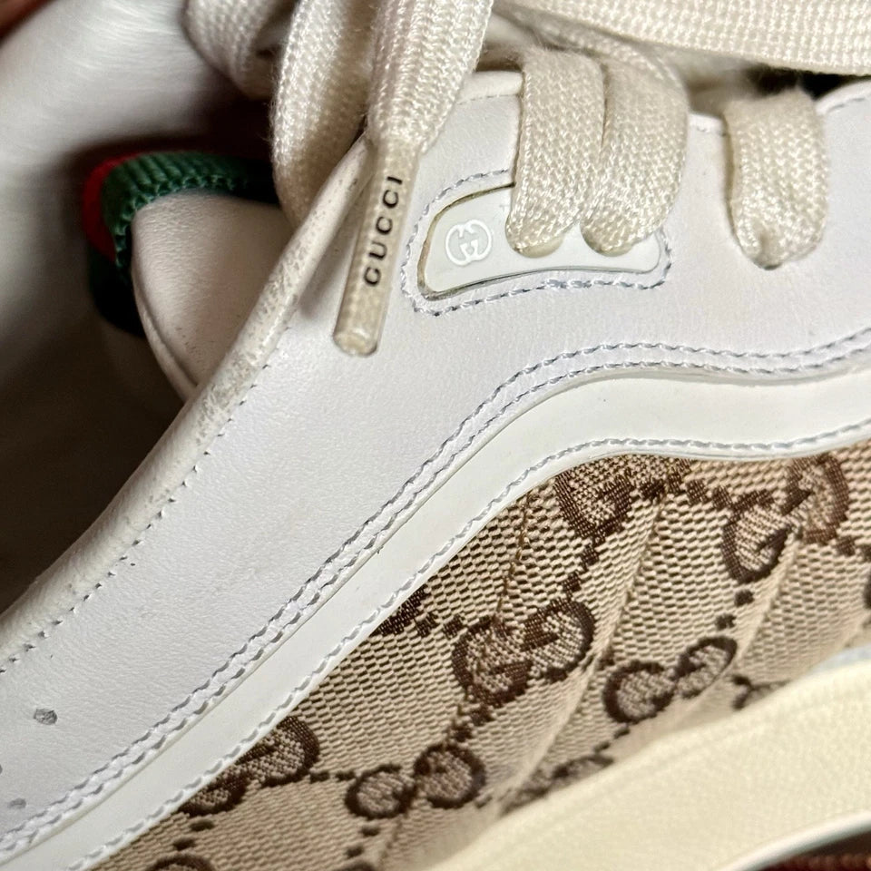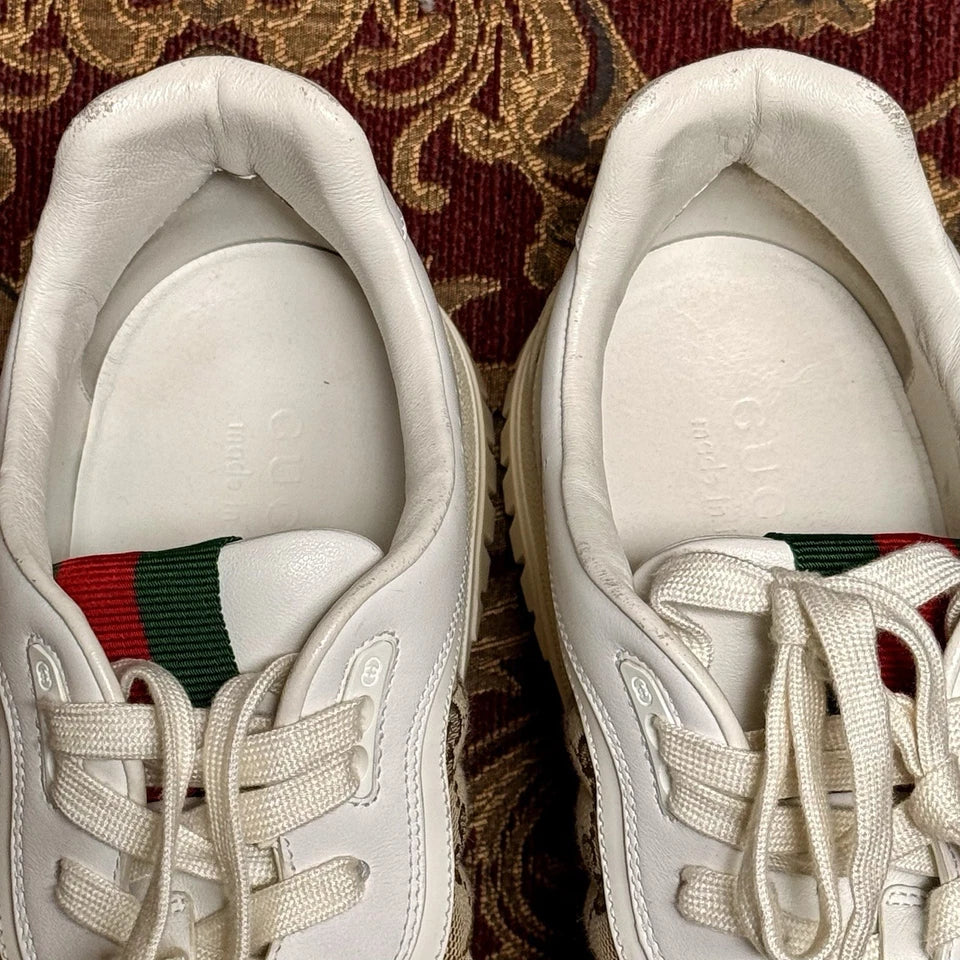 GUCCI Re-Web Sneakers 787476 Mens Size 12 Gg Canvas & Leather, Barely Used