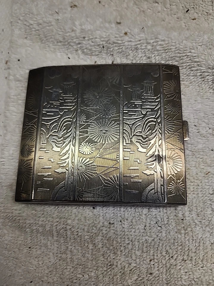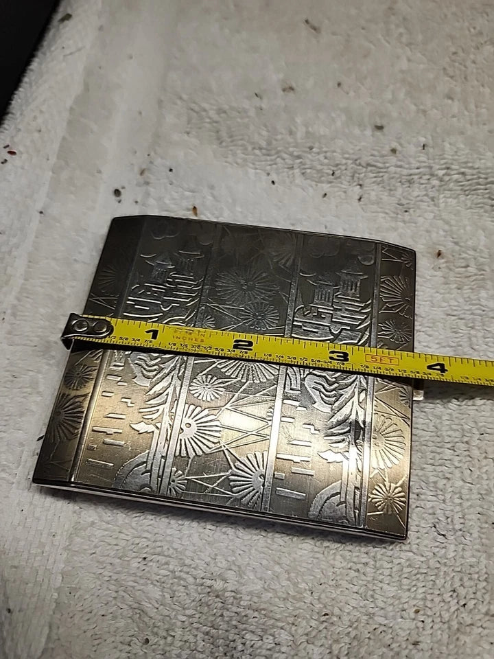 This antique cigarette case is a rare find for any collector. Made of sterling silver (.925), it is both durable and elegant. The intricate pattern on the case adds a touch of Japanese artistry.