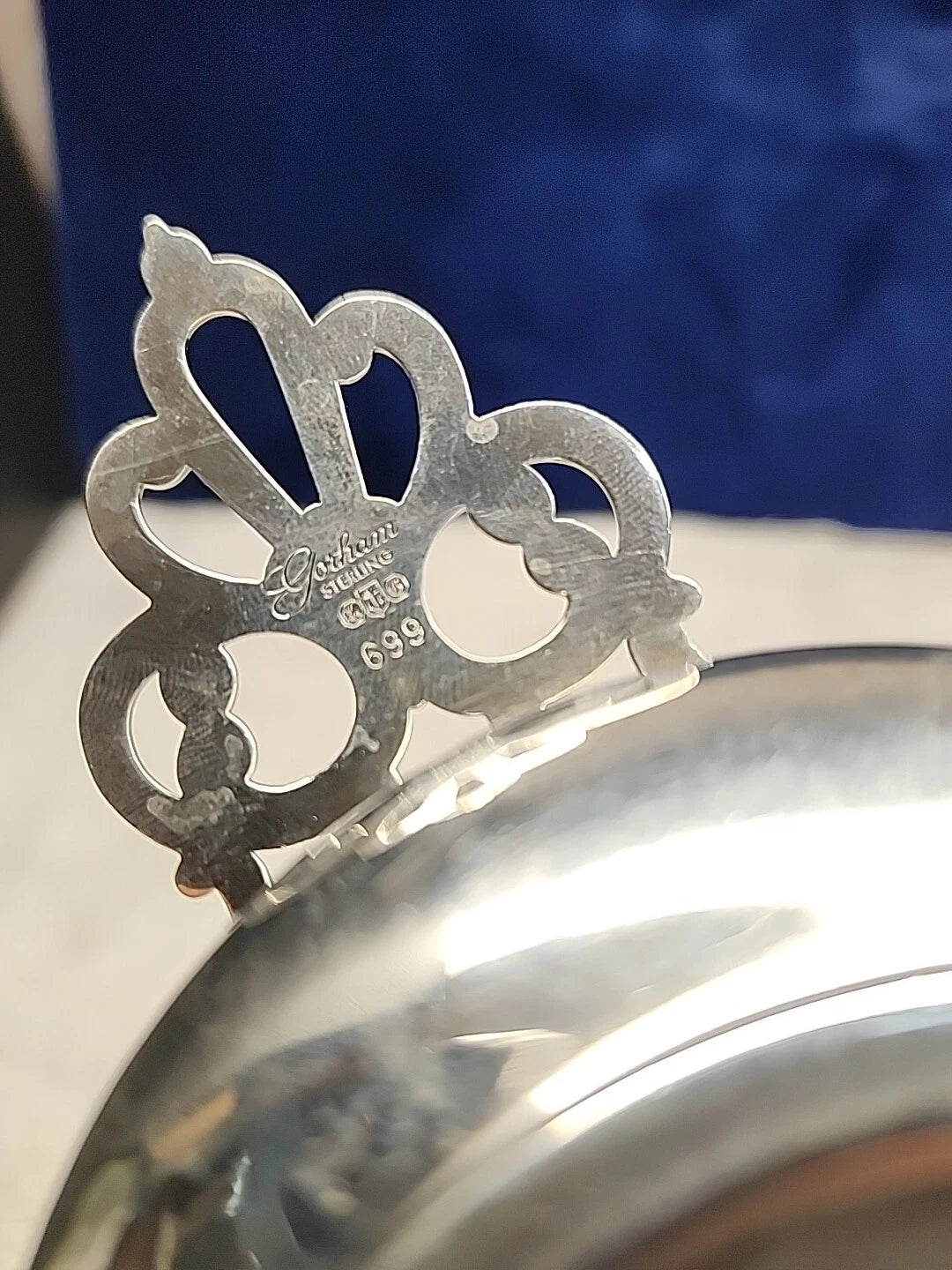 This beautiful Gorham Solid Sterling Silver 699 Porringer Bowl is a perfect addition to any collection. Crafted in an antique style, this bowl is a must-have for vintage, retro, and mid-century enthusiasts. Its unique design and quality material make it a great piece for display or use.