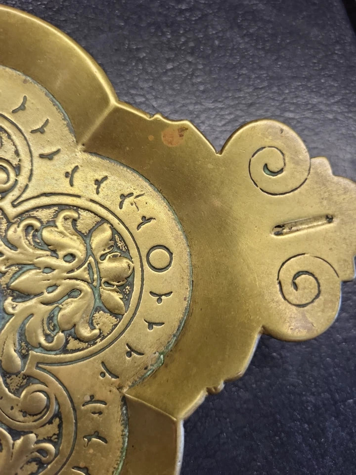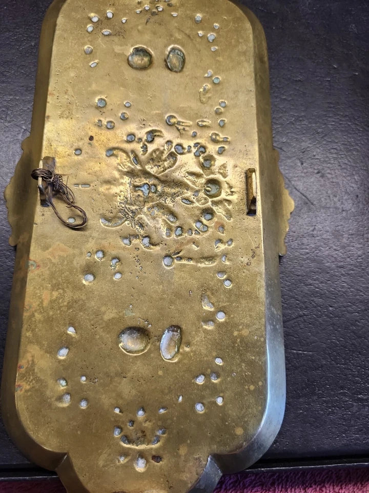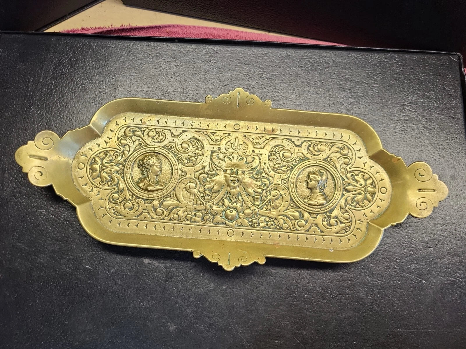 19c.French Art Nouveau Brass profile portraits & diety Card Pin Card Tray 13''.