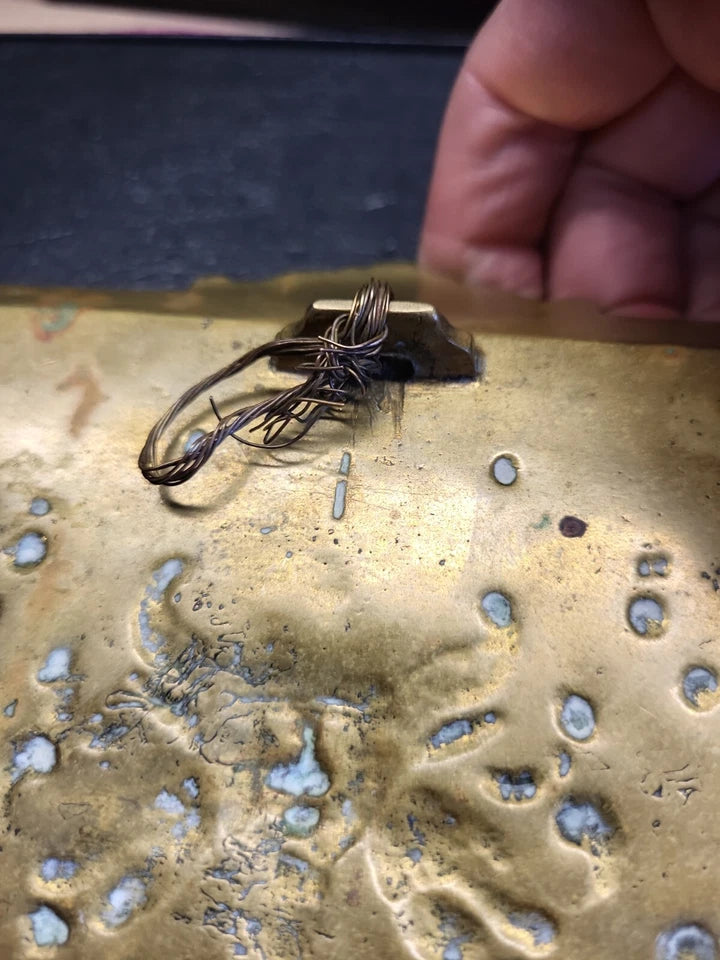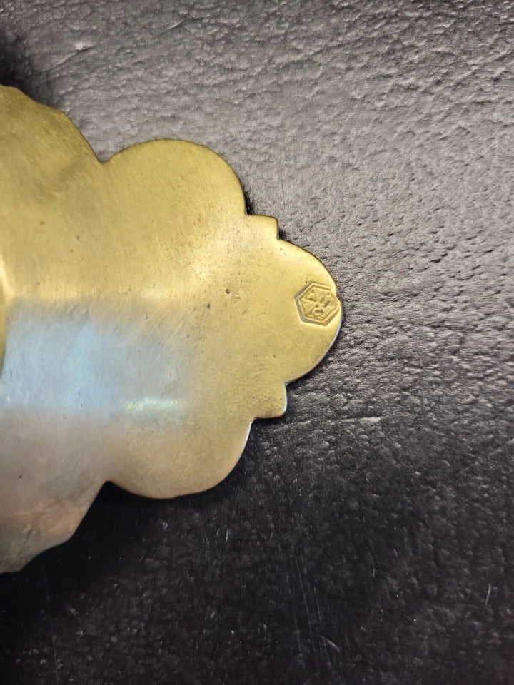 Absolutely perfect condition with mellow dark brown patina on bronze. Footed tray. A tiny stamp on the back handle. There is wire afixed so it can be hung.