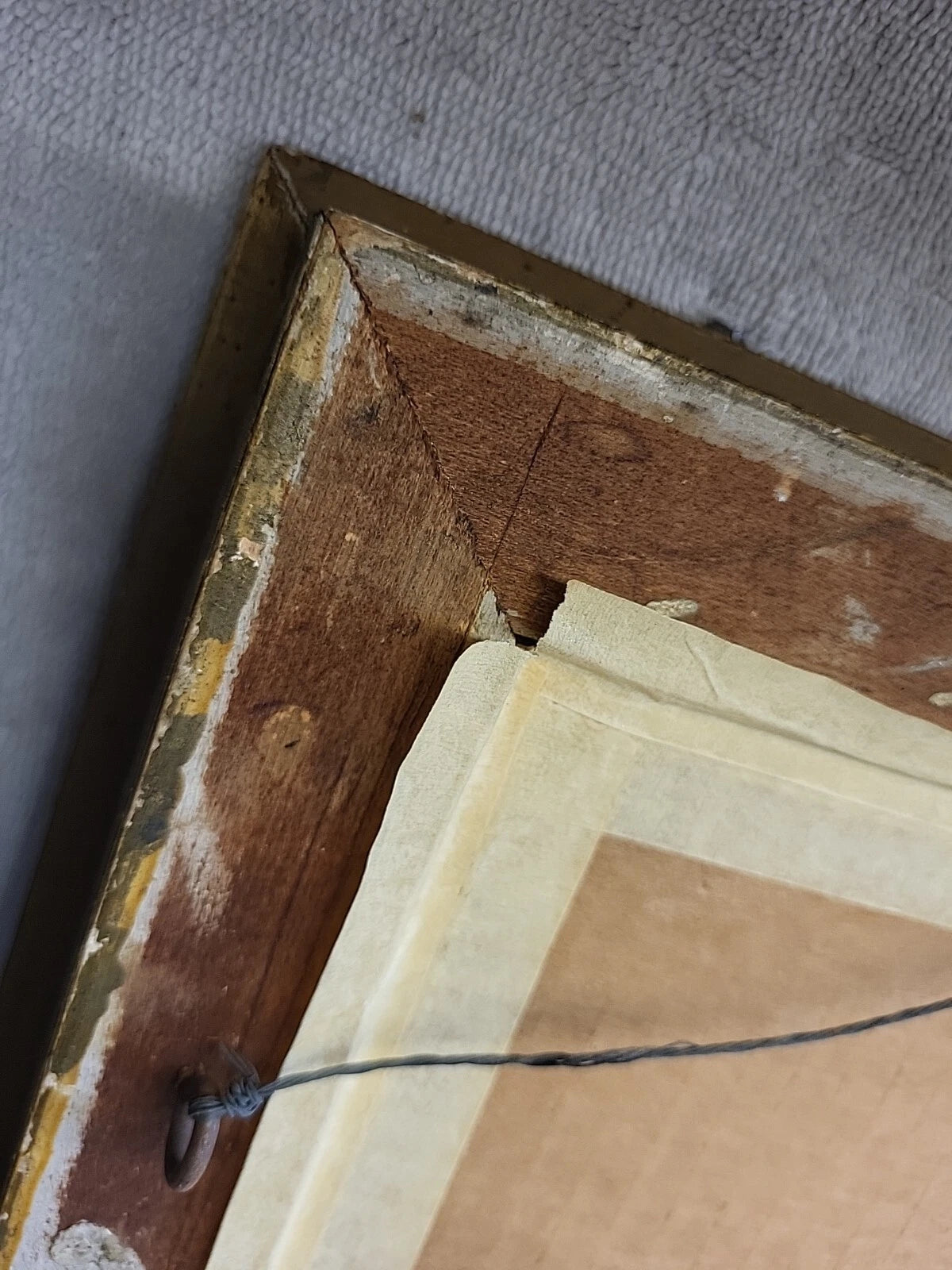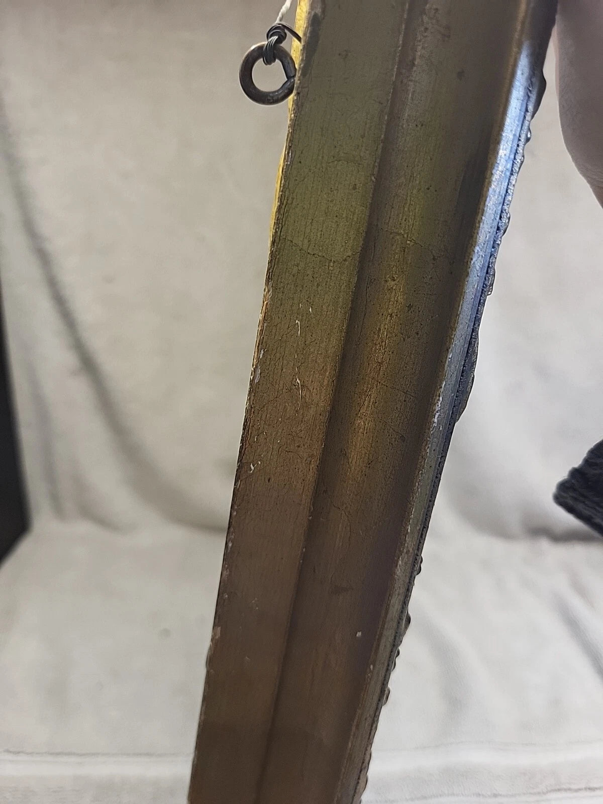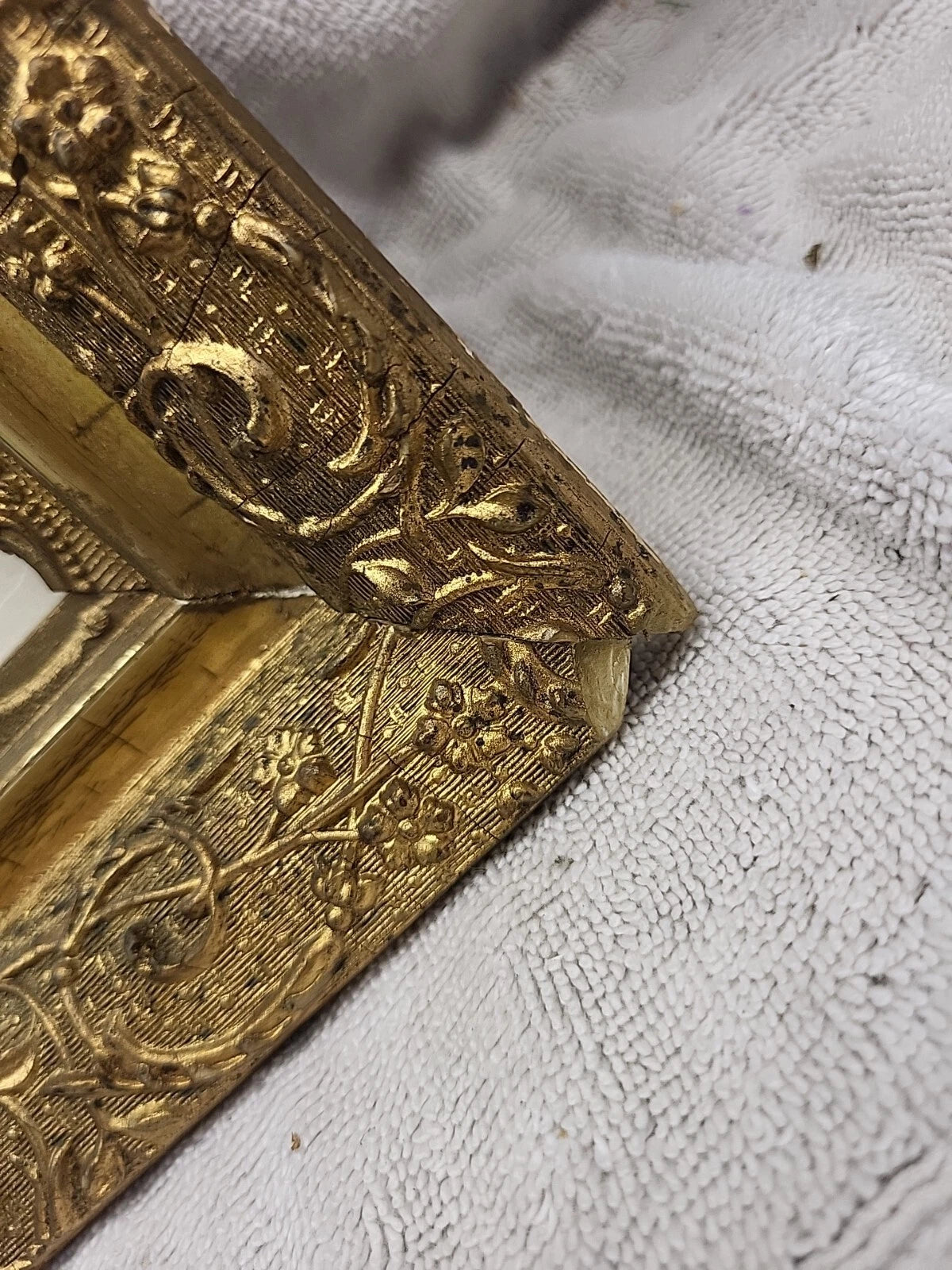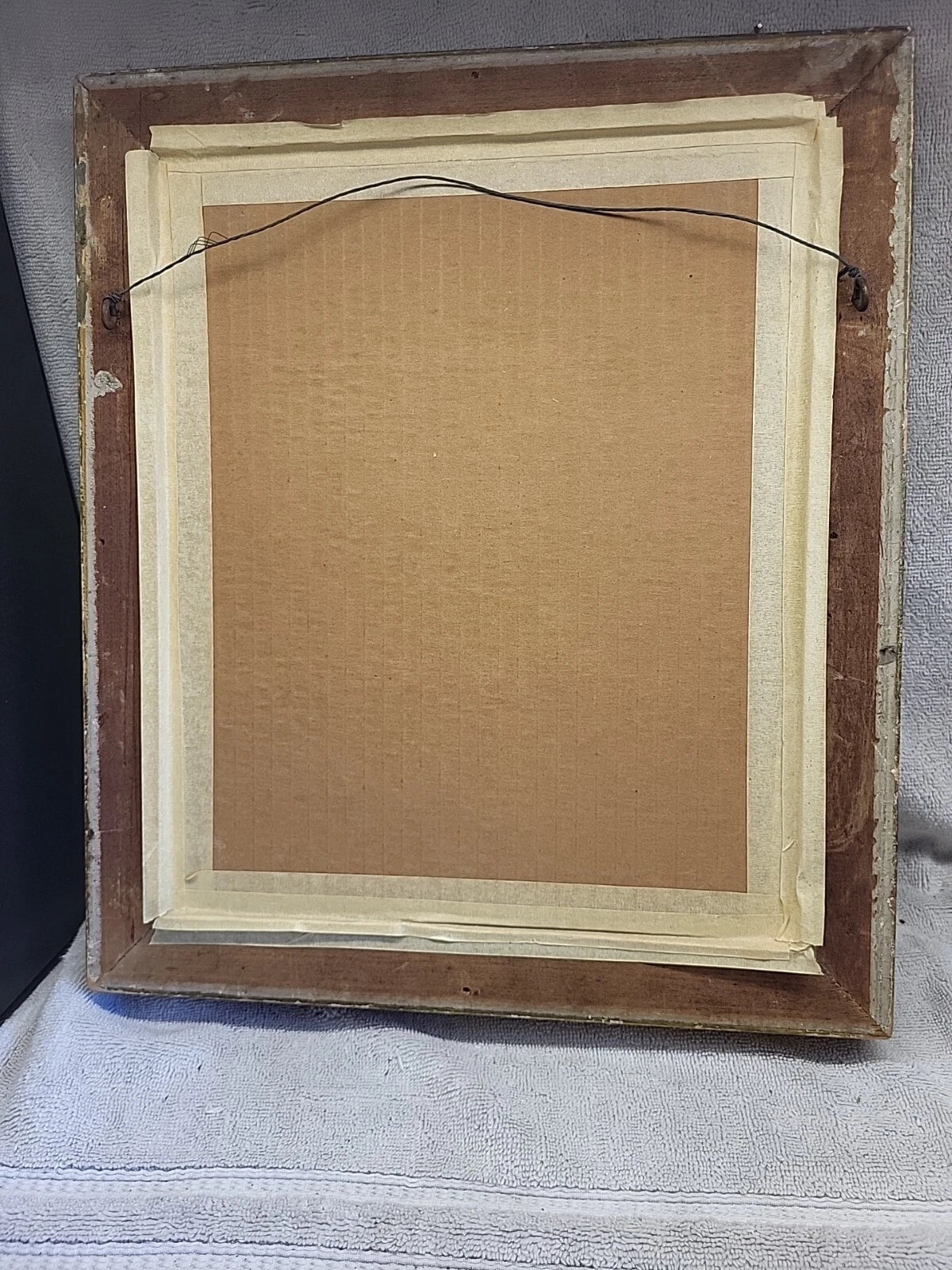 A very nice piece of art in an ornate frame. Print is in nice condition, some discoloration on the very edge. The frame has some chips in various places. The tape on the back could be replaced.