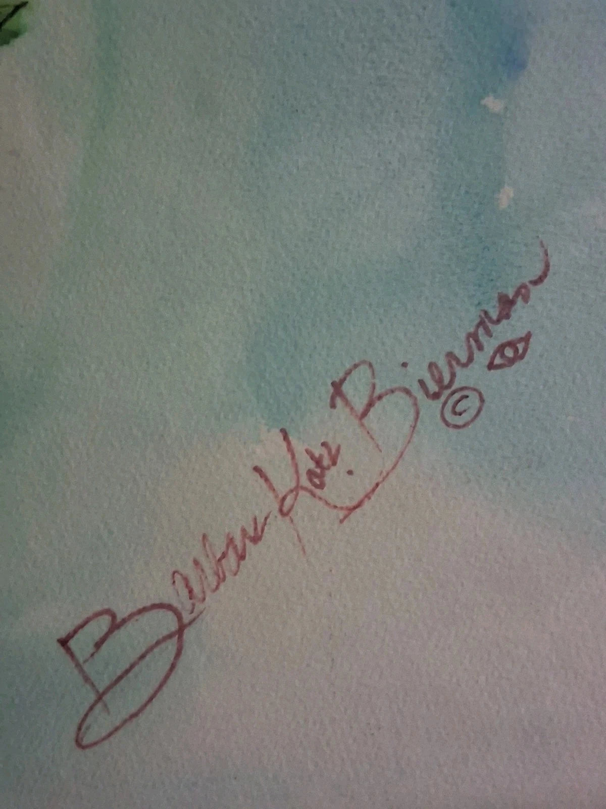 The product is an original watercolor painting by artist Barbara Katz Bierman, featuring modernist style.