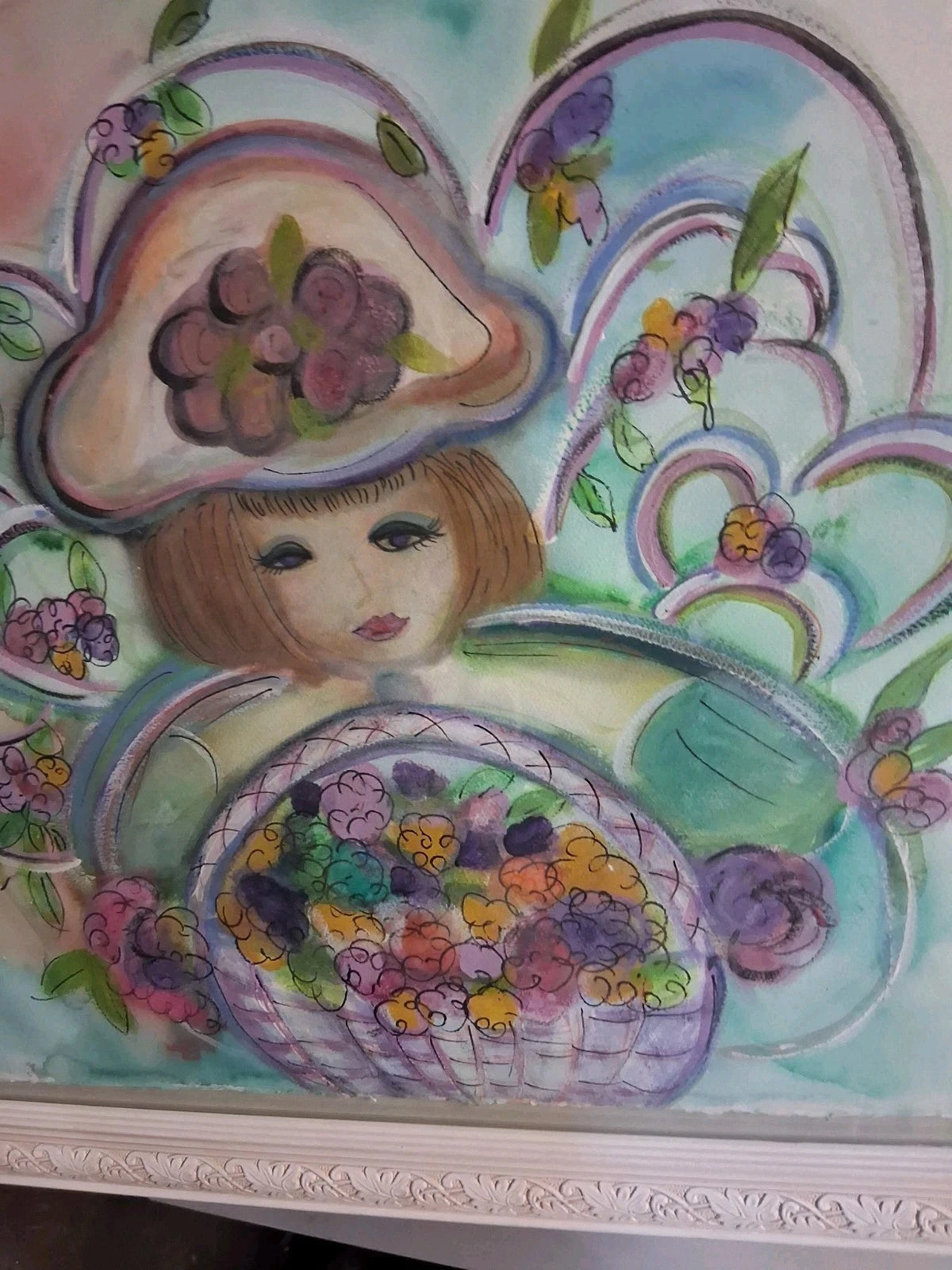 The painting depicts women and figures in mixed colors, signed by the artist.