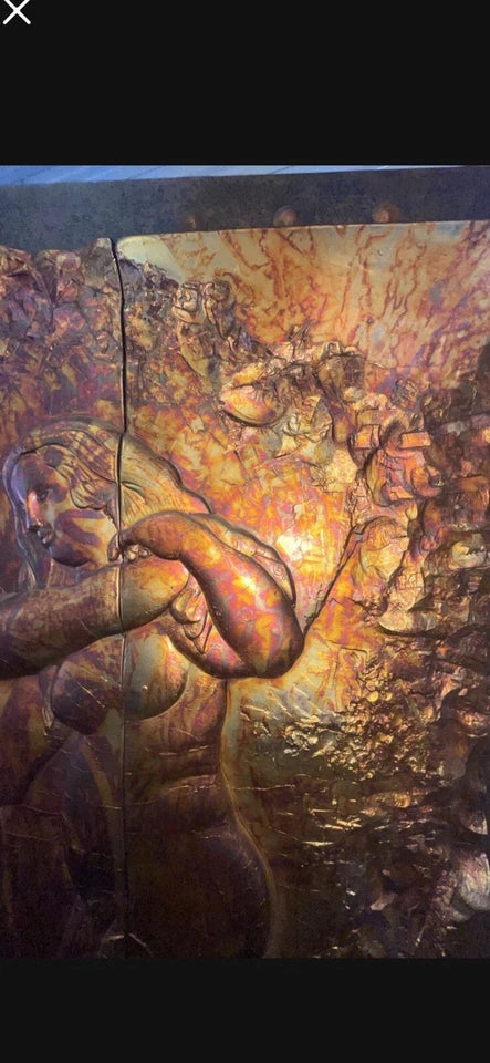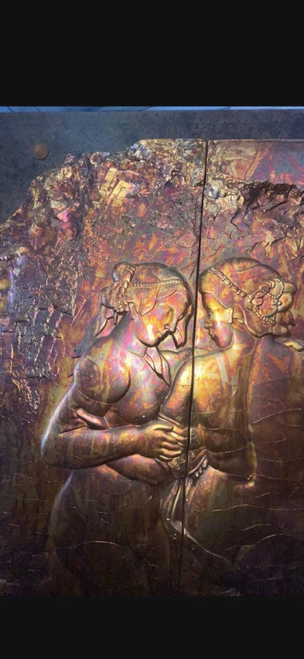 Extra large tin or copper over fiberglass panels mounted on a wood frame.