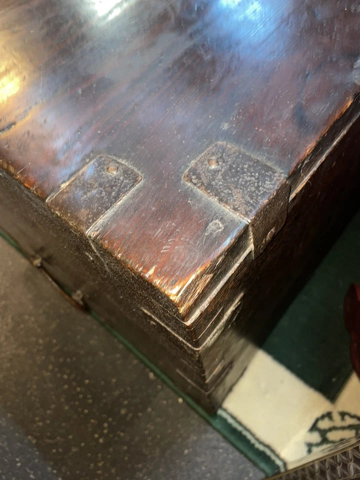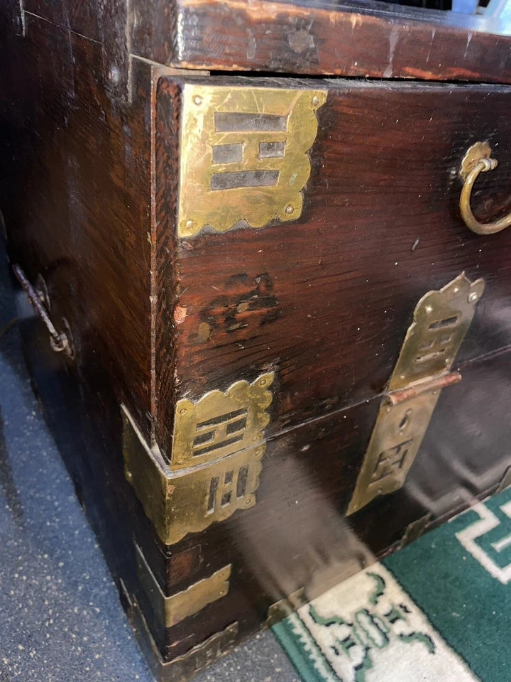 Antique Solid Wood Japanese Chest, Trunk With Really Unique Hardware