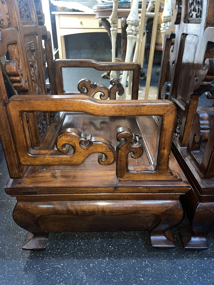 Ideal for collectors, the chairs make for an excellent addition to any Asian-themed room. Their intricate woodwork and impeccable structure offer comfort and style, making them a must-have for your home. Don't miss the chance to own a piece of history and add these chairs to your collection!