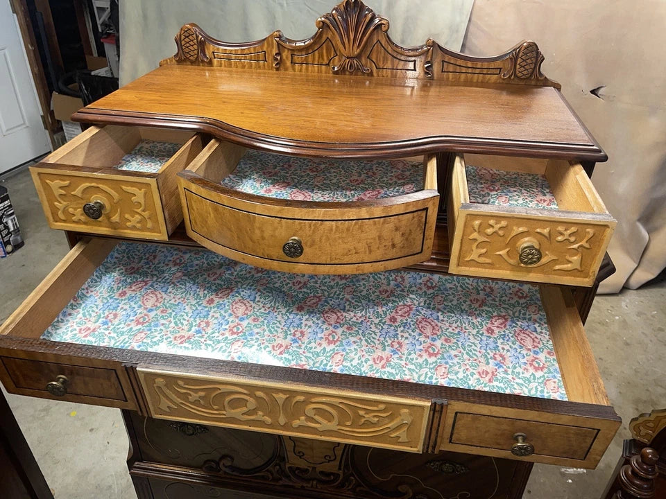 Antique 1920’s-30’s Bedroom Set High Boy Dresser-Mirrored Dresser Full Bed