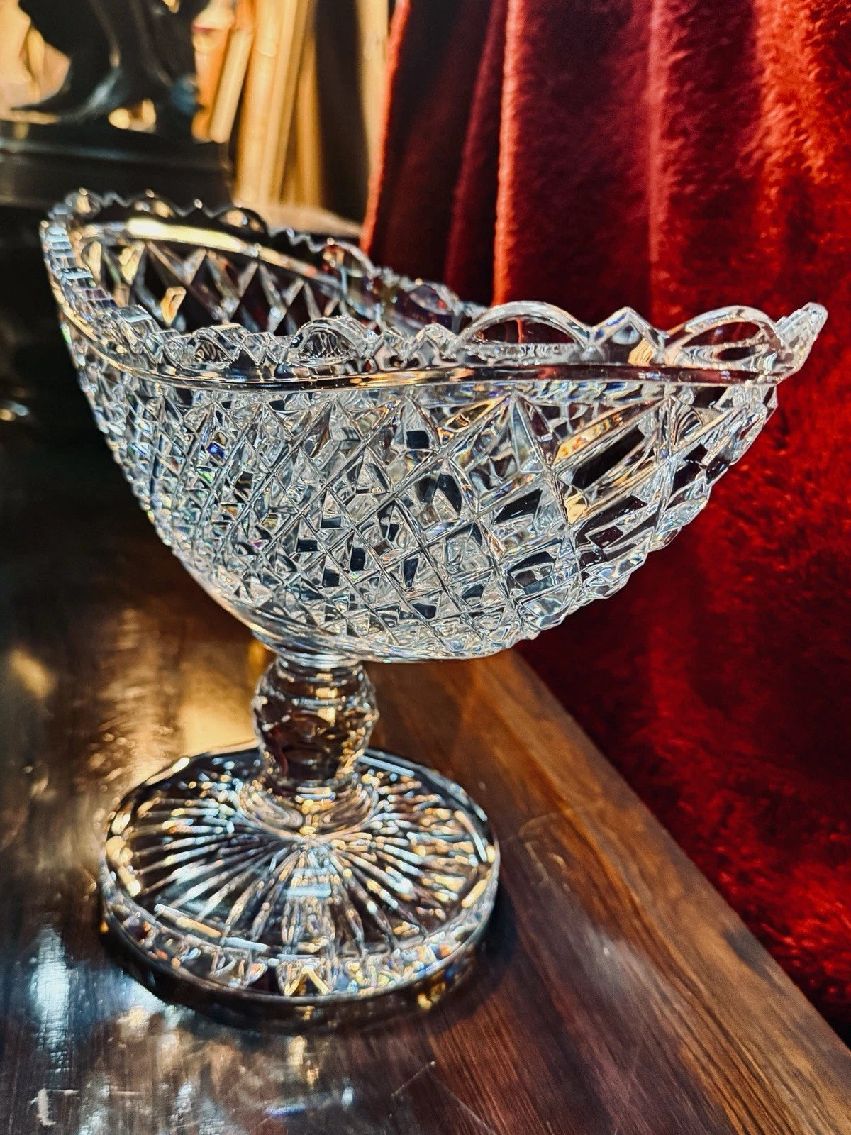 • Footed pedestal base with detailed starburst cutting