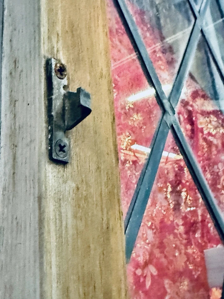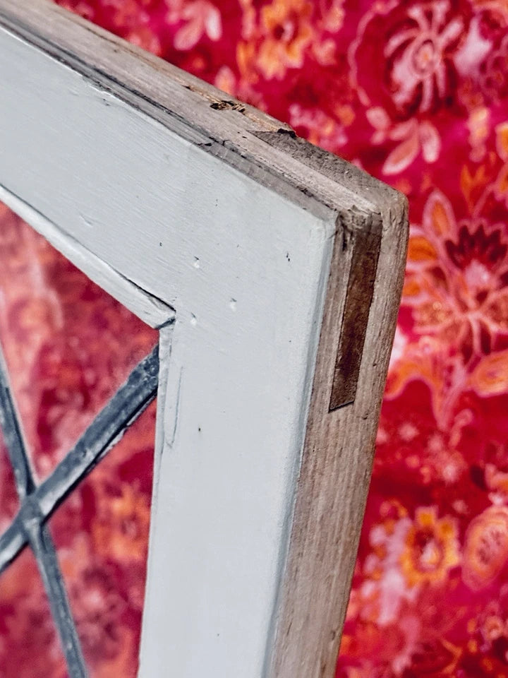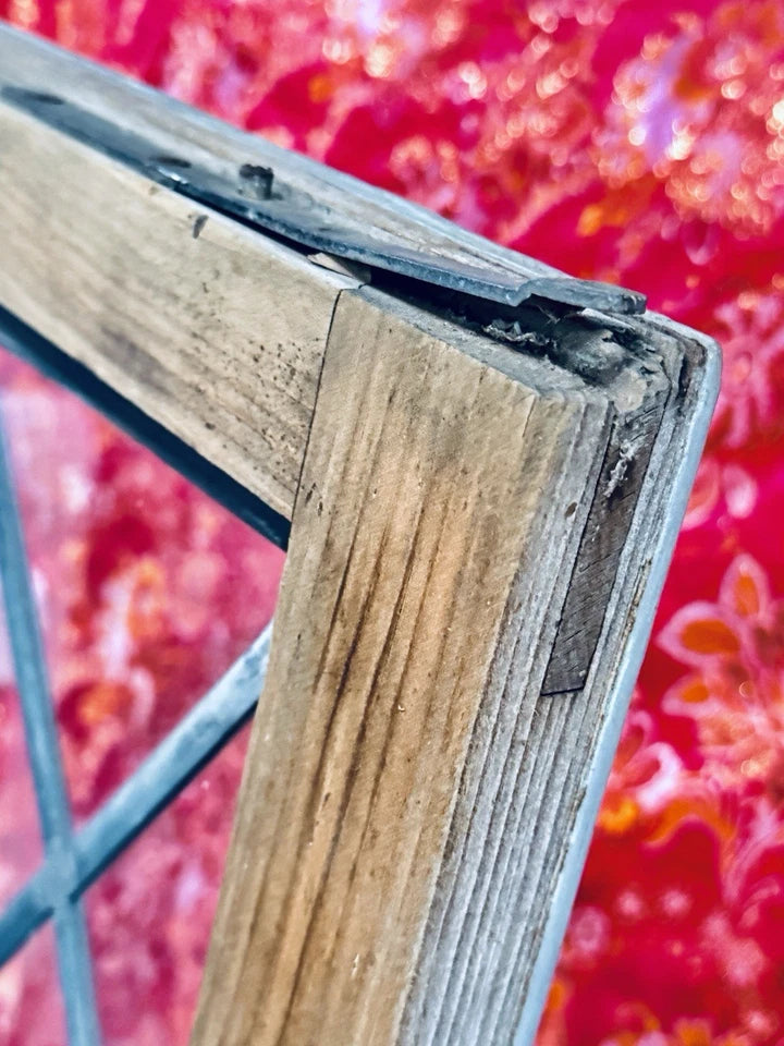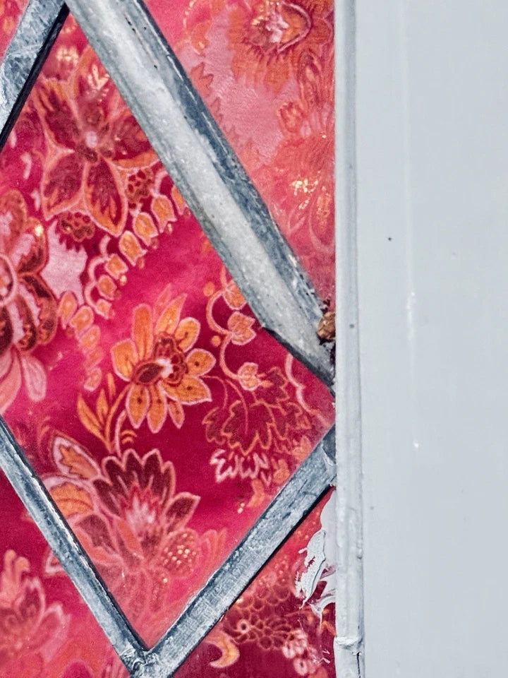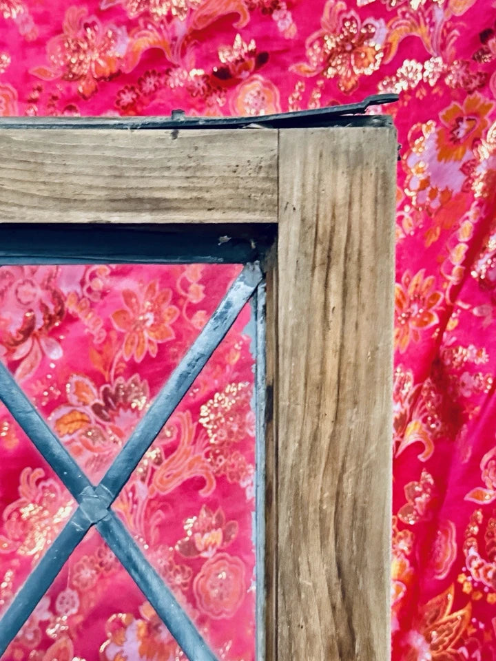 One diamond-shaped pane has a visible crack (see last photo), but the panel remains structurally sound and visually striking. The wood frame is solid with age-appropriate wear. Ideal for restoration, architectural installs, or as a statement art piece.