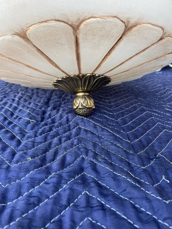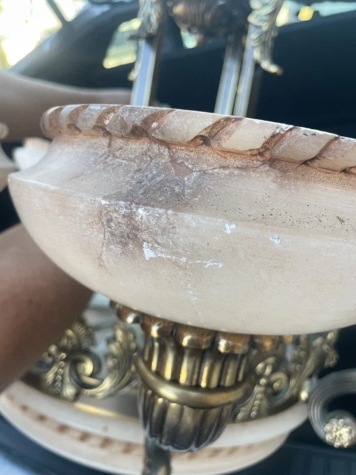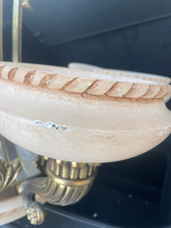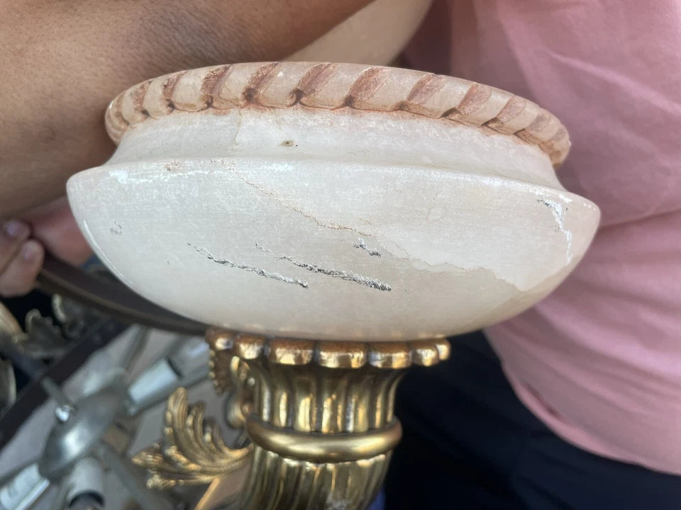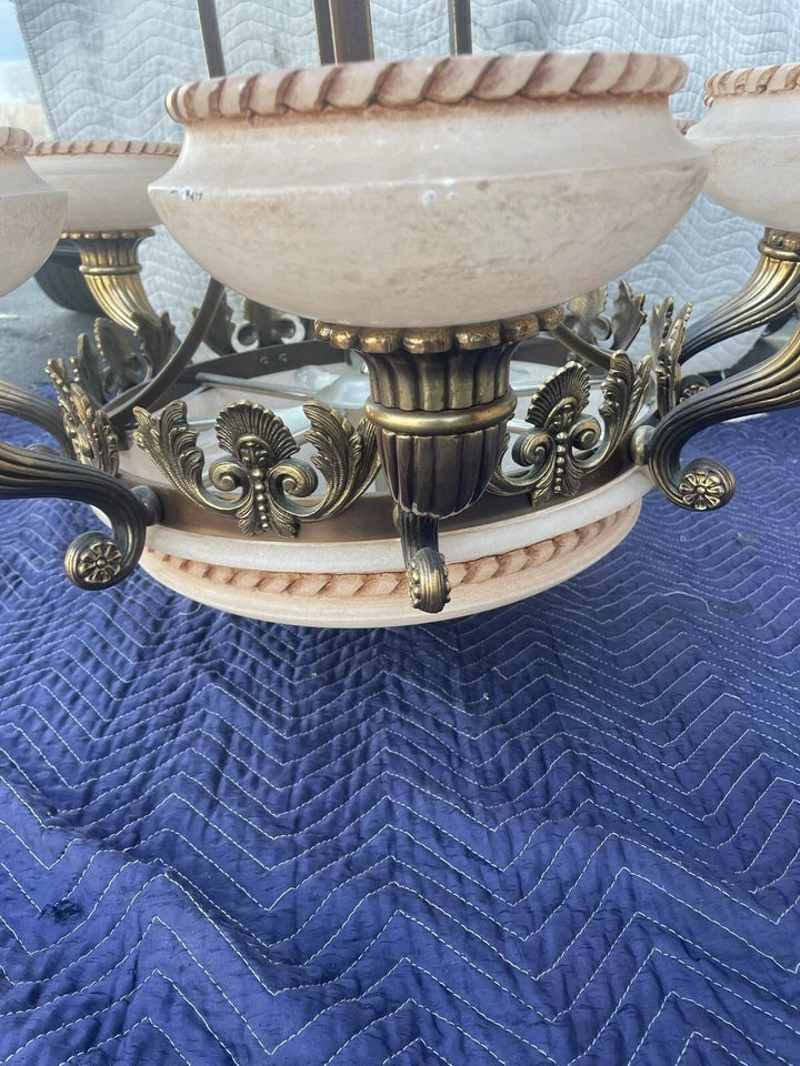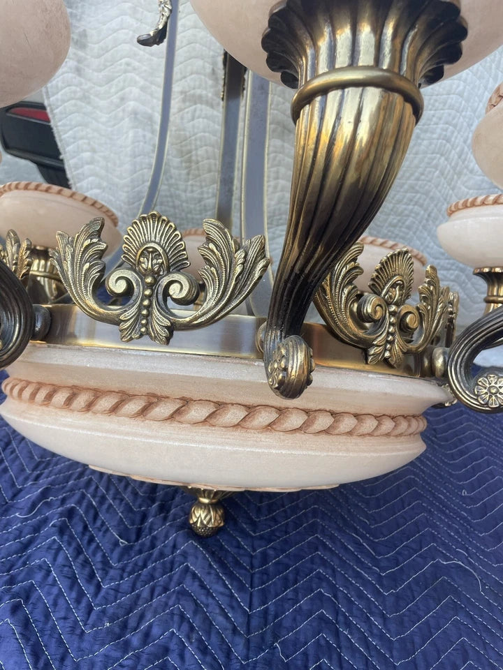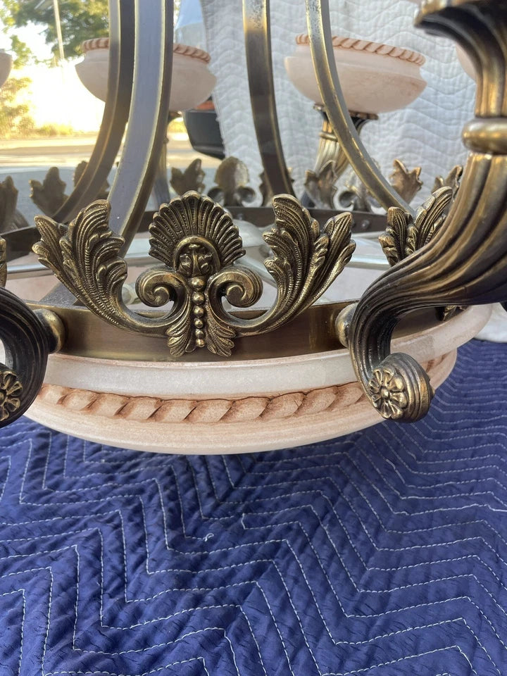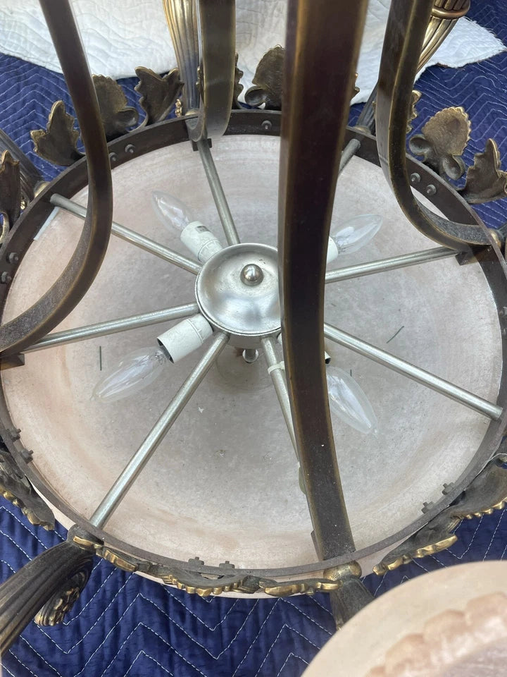 Vintage Large Bronze & Alabaster pendant Chandelier
