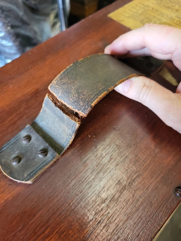 From the late 19th century, this Norwegian pattern Nautical Foghorn is within a boxed pine varnished case with corner dovetailing, original leather carrying strap, brass side crank, and it's original copper trumped horn. The card accessory sticker is in tact with instructions, shows signs of obvious age but is still quite legible.