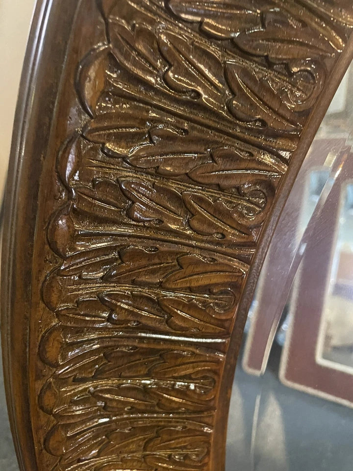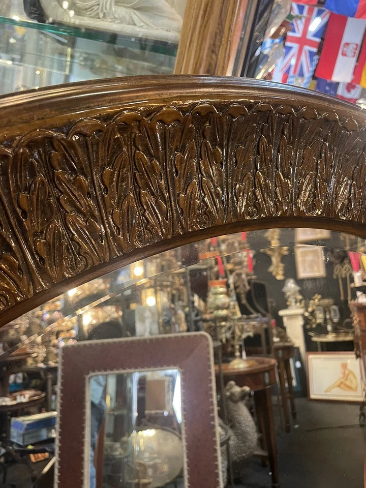 The #212 MP1 Beautiful & Unique Round Wall Decorative Beveled Mirror is an ornate accent mirror with a brown wood frame.