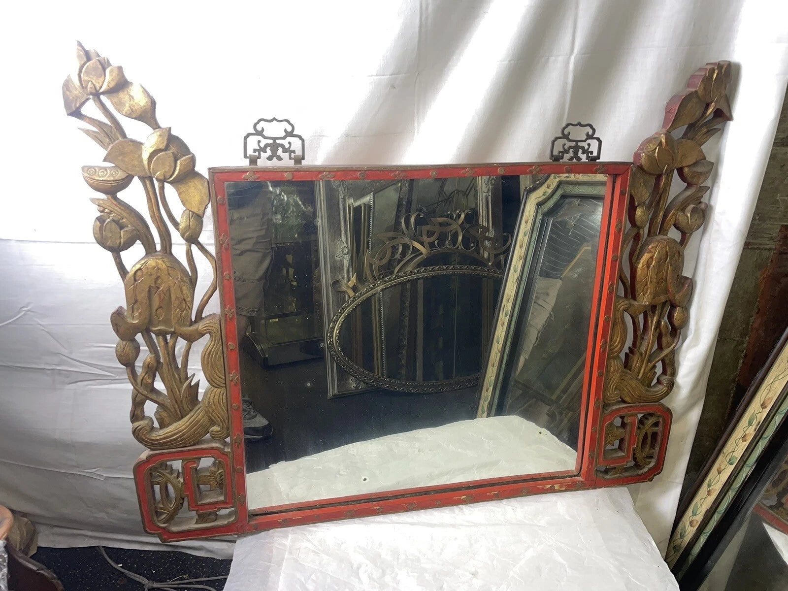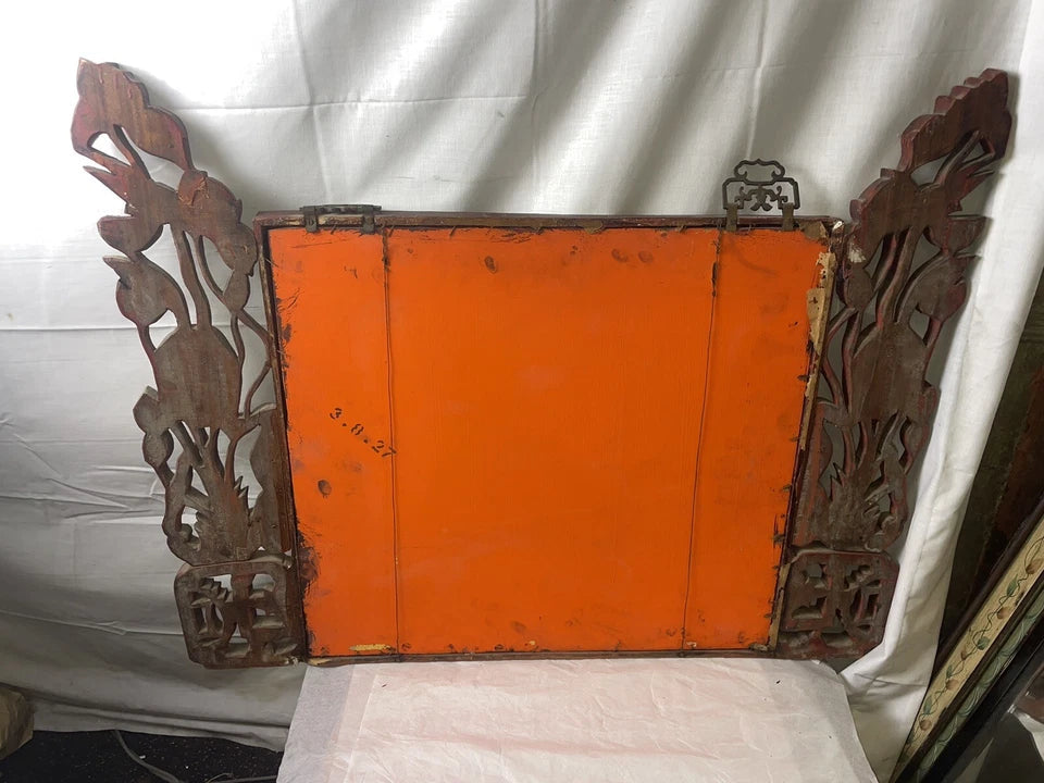 Large Ornate Antique Chinese, Unique Wood Framed Mirror 1927
