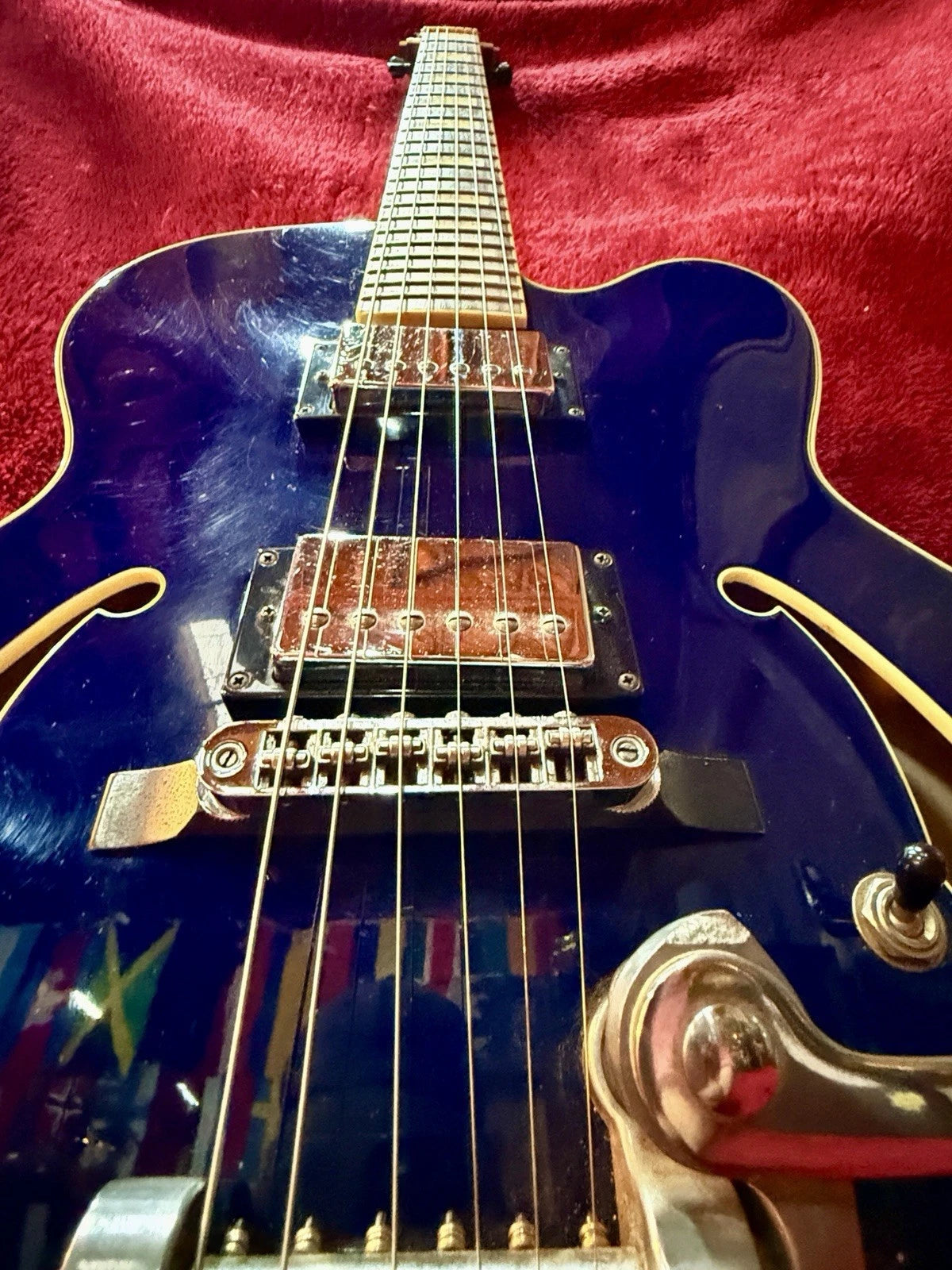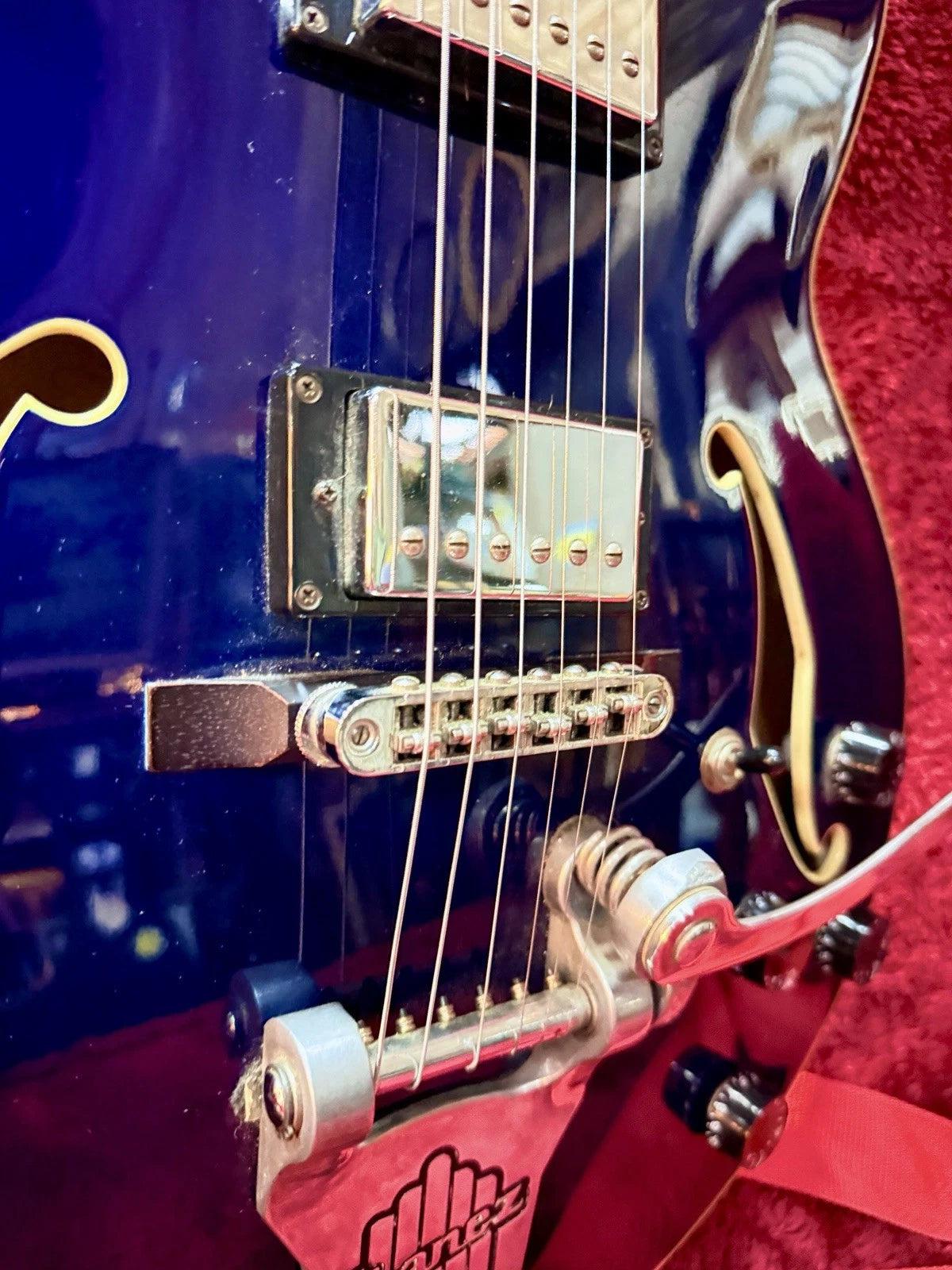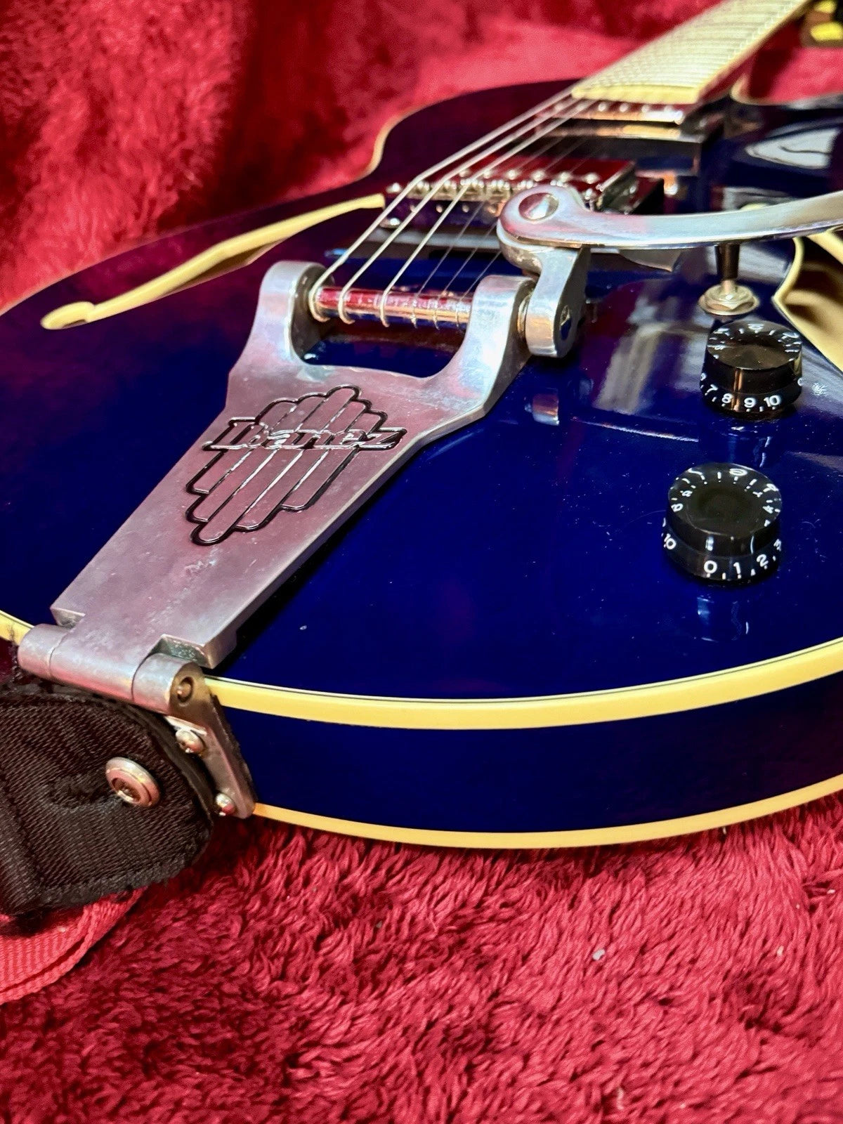 Bridge/Tailpiece: Licensed Bigsby Vibrato (Tremolo) tailpiece and ART-2 Roller bridge for classic pitch bends and stable tuning.