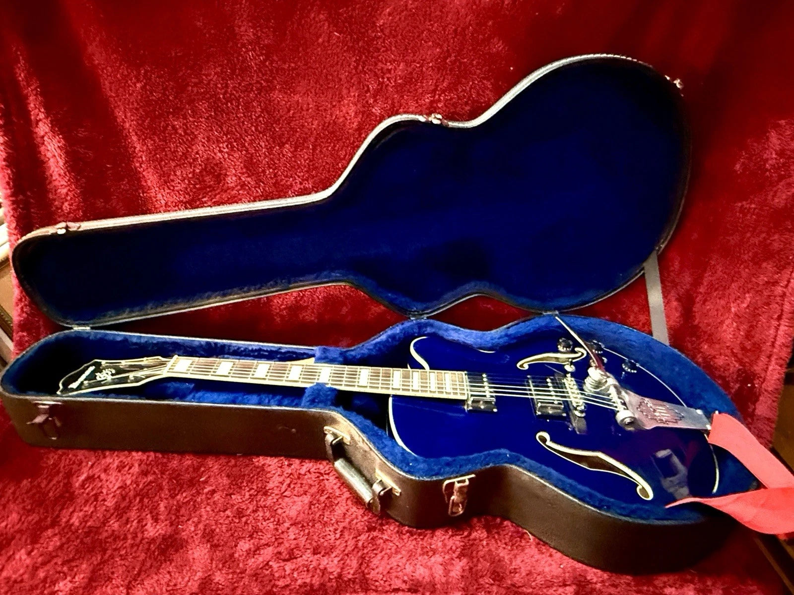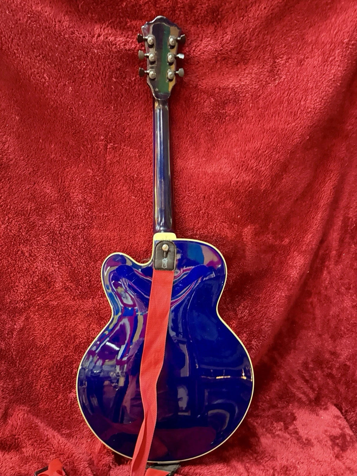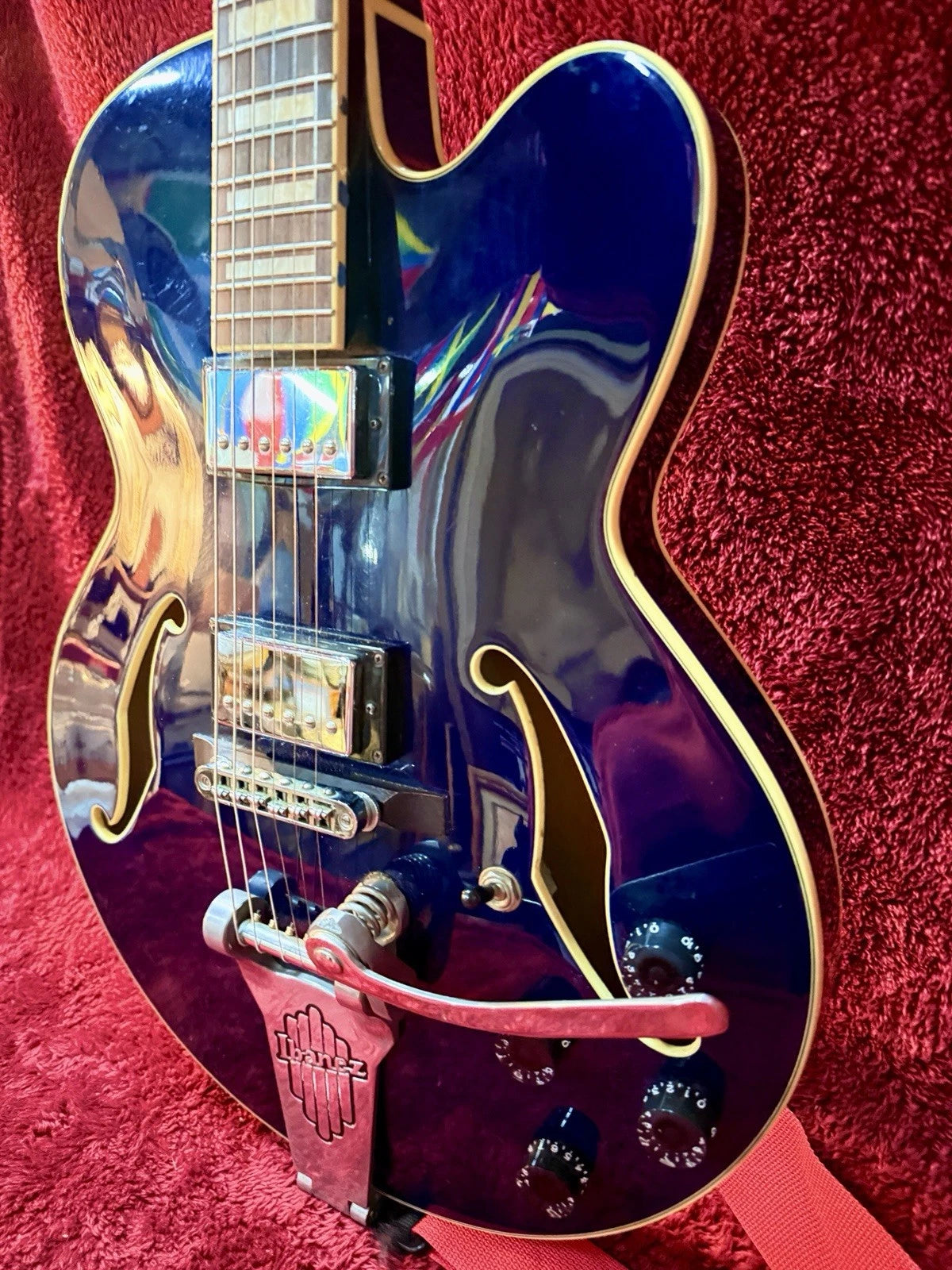 Up for sale is a beautiful Ibanez Artcore AFS75T in a stunning Transparent Blue finish. This model is known for its thinner fully hollow body, making it incredibly comfortable to play while still delivering that classic, resonant jazz and rockabilly tone.