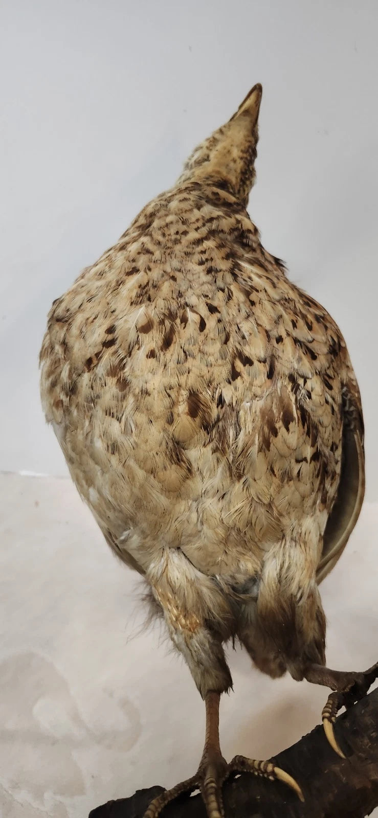 This beautiful piece of taxidermy features a Pternistis Squamatus bird mount, also known as the Scaled Quail. The bird is expertly mounted on a pedestal and measures 18 inches in height, 9.5 inches in length, and 6.5 inches in width. This piece would make a great addition to any hunter's collection or as a unique decorative item for any home. The bird's intricate feathers and detailed craftsmanship make it a stunning display piece that will surely catch the eye of anyone who sees it.