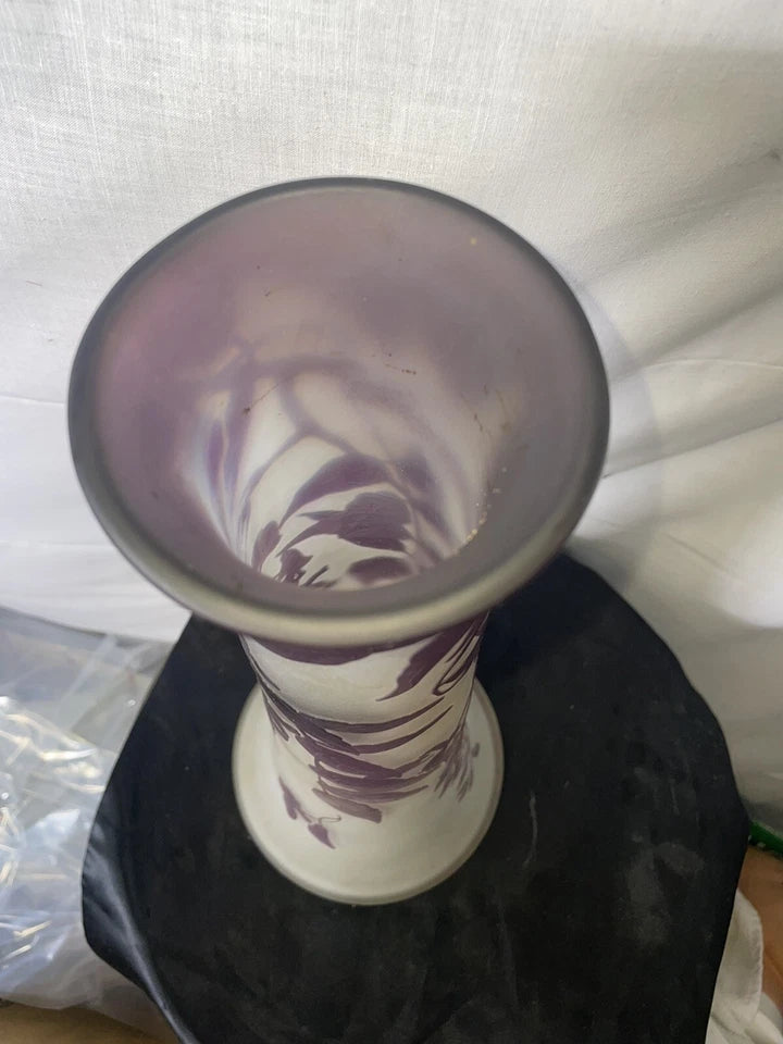 For sale original EMILE GALLE double overlay Cameo glass acid etched vase. Circa 1880's . Vase is signed. Very graceful floral pattern body. Height 18.5” High, 7” diameter at the base.