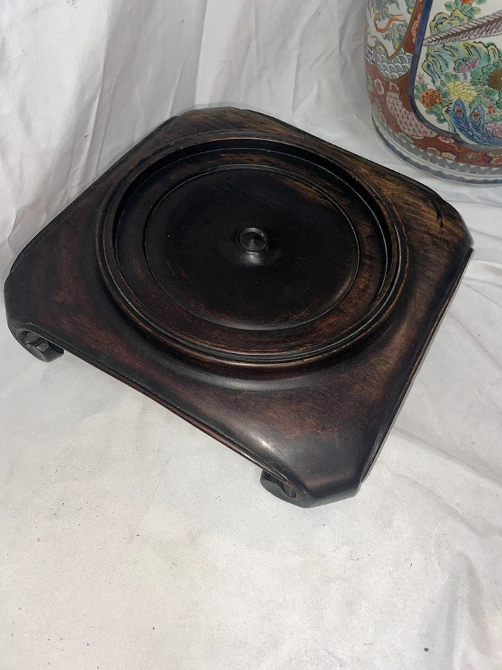 Imari iron red floral, dragons, and geometric pattern with famille rose style phoenix birds perched on the floral branch motif.