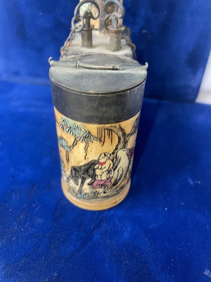 This antique opium pipe hails from 19th century China and is a rare find for collectors and enthusiasts alike. Made entirely by hand, the piece boasts a unique mix of materials including bovine bone and features a stunning multi-color design. Its origin and age can be traced back to the late 1800s, adding to its value as a true antique. The opium pipe represents a piece of history and culture, and is a must-have for anyone interested in Chinese antiques.