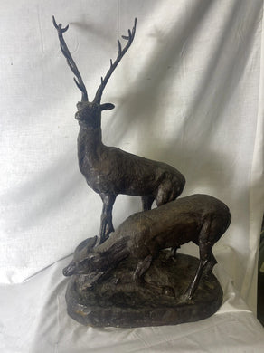 Vintage Jules Moigniez (French, 1835-1894) Large Bronze Sculpture Deer Stag Pair