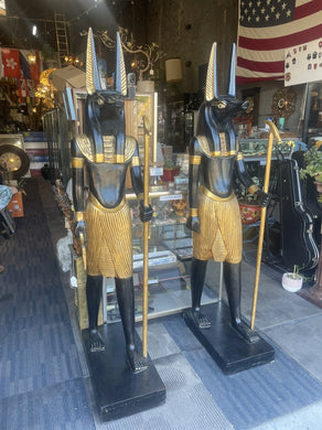 Pair Of Black & Gold Egyptian God Anubis 6 foot Statues
