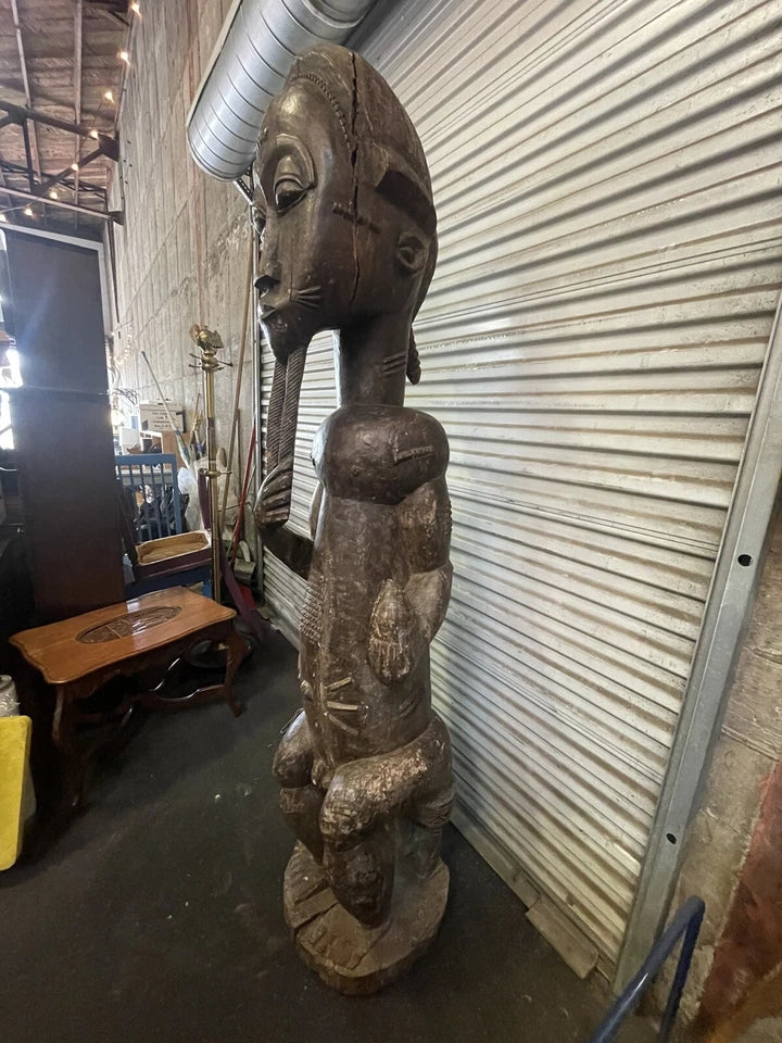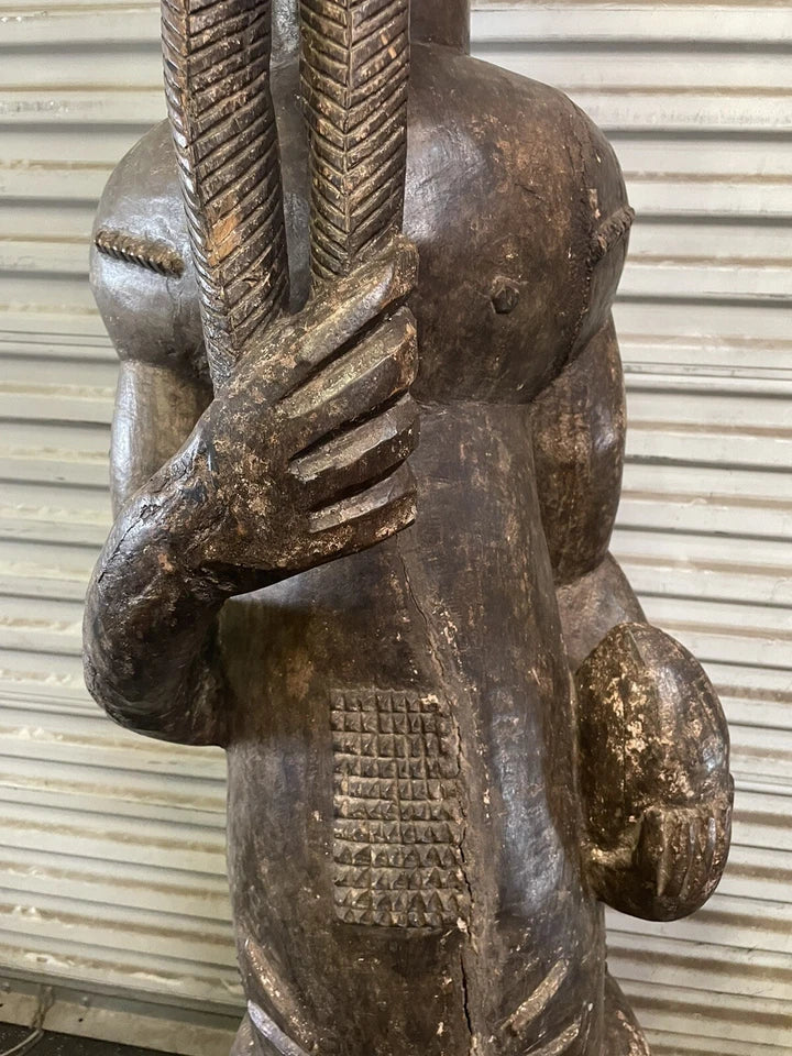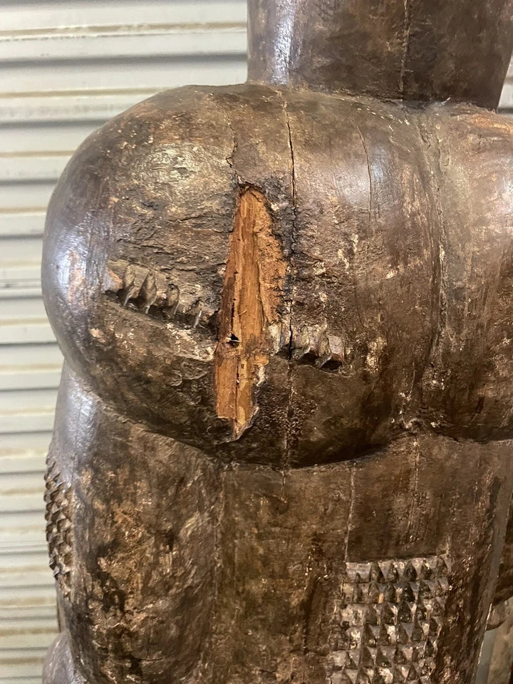 Extremely large statue carved out of one piece of wood and stands approximately 80 inches tall.