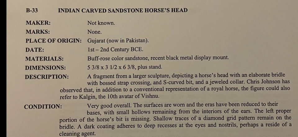 Ancient Indian sandstone horse head mounted on metal base 1st-2nd Century BCE!!