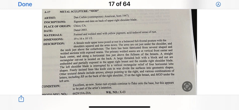 Female Torso Sculpture Dan Corbin Signed and dated Contemporary Artist 2003