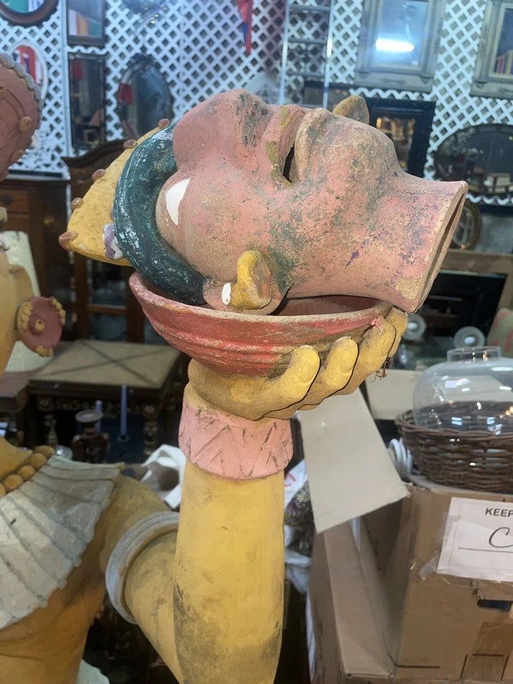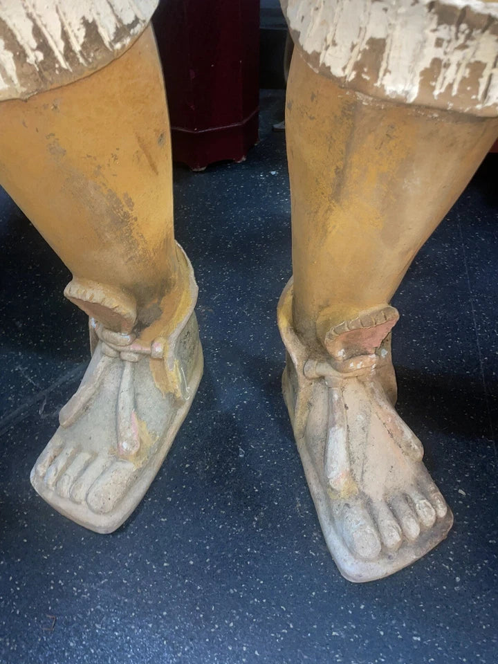 Missing one thumb from the hand otherwise in nice condition with just minor paint loss and wear from handling and use commensurate with age and being used outside