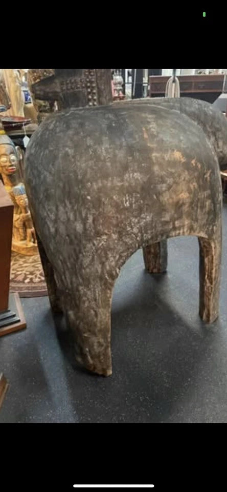 They are used at funerals, harvest festivals, and at initiations. Normally these "masks" have four legs or posts(for placement on the shoulders), and feature large noses and pendulous breasts, which hang close to the body. The carving would then be provided with a colorful and elaborate costume prior to use. Our mask is quite unique, having Primitive characteristic Nimba features, It is nicely carved-fair to good condition as can be desired attesting to its age and extensive use---great aged patina contributing to the beauty of Tribal Art--and making for a exciting decorative piece.