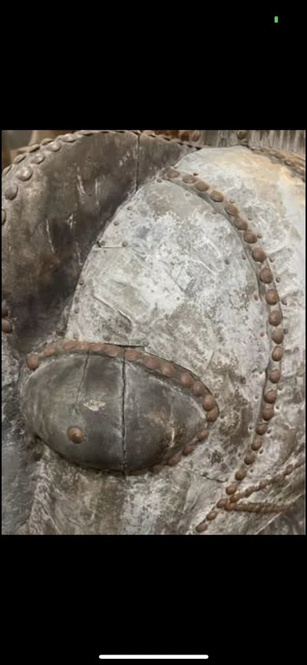 CONDITION: Good. Splits, scrapes, and cracks, worn leg areas, worn areas to patina-- attesting to the age and use.
