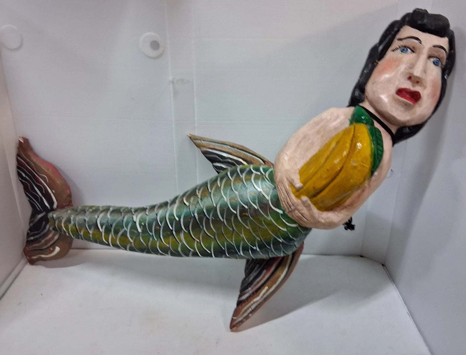 This vintage Mexican folk art mermaid wall art is a unique and handmade piece that showcases the rich cultural heritage of Mexico.