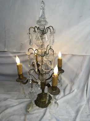Late 18th/ Early 19th Century Brass and Crystal Candelabra Lamp
