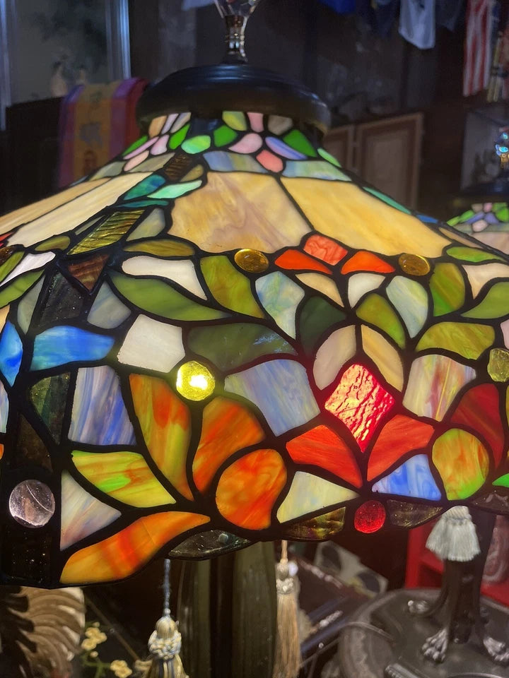 Add a touch of vintage style to your home with this stunning pair of Tiffany-style stained glass table lamps. The warm light multicolor and beautiful dome-shaped shade create a cozy ambiance, perfect for any room in your home such as the kitchen, bedroom, living room, sunroom, home office/study, or dining room. This corded table lamp features a pull chain control style and does not have a sensor type, making it easy to use.