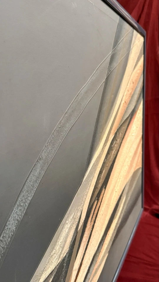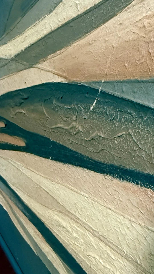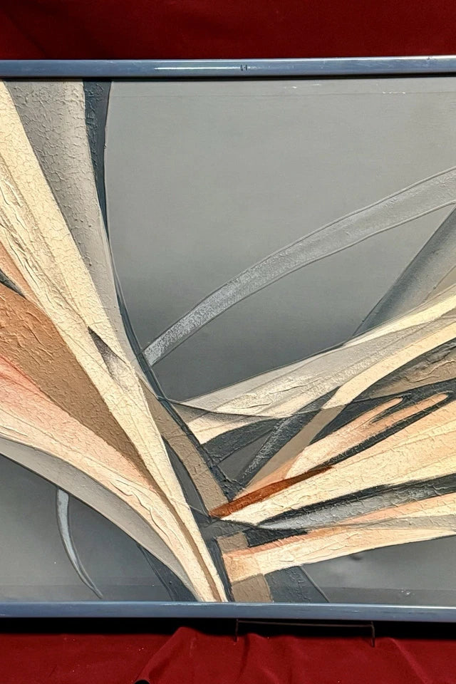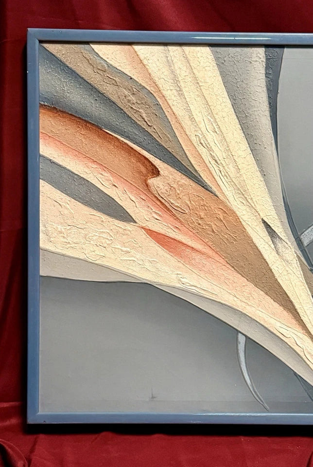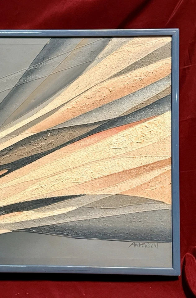 This is a vintage, original abstract painting created by artist Anderson using oil on canvas. The painting is framed and signed by the artist, and it measures 62 inches in height, 32 inches in length, and 2 inches in width. The painting features an abstract style and is a single-piece work.